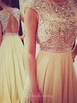 Long Elegant Sleeveless Prom Dress Chiffon Scoop Evening Gown With Beadings and Crystals