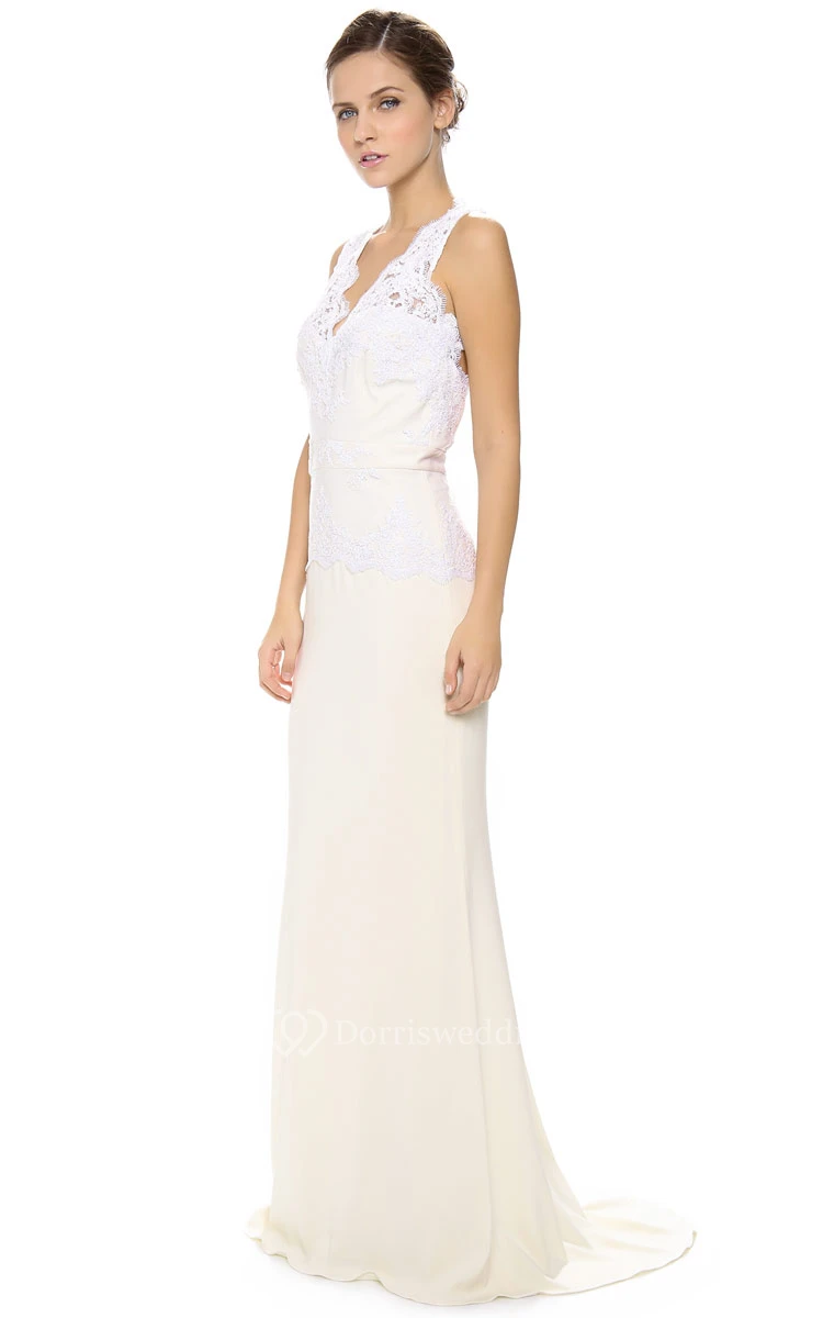 Long Low-V Neckline Sheath Satin Dress With Keyhole Back