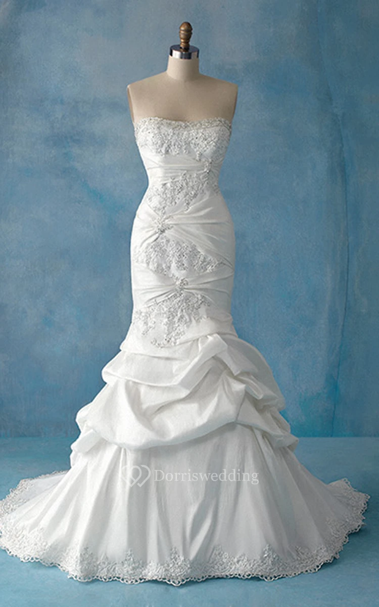 Long Mermaid Strapless Taffeta Dress With Ruffles