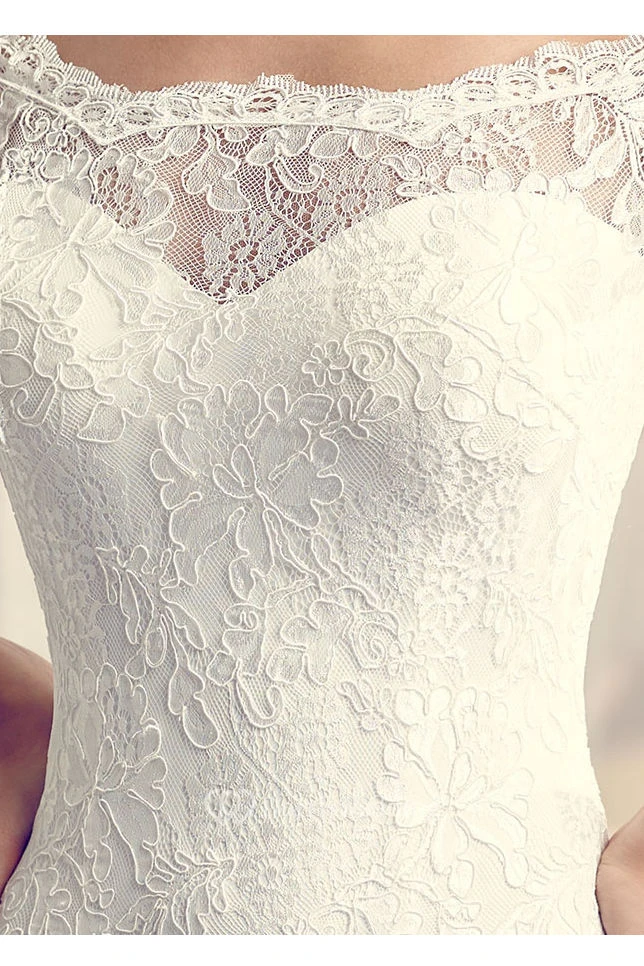 Long Off-The-Shoulder Long-Sleeve Lace Wedding Dress With Court Train And Illusion