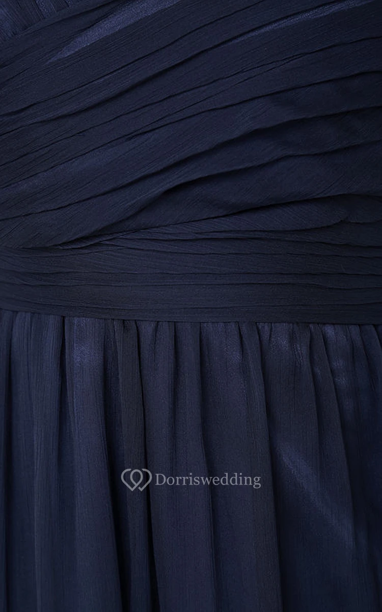Long One-Shoulder Chiffon Unique Dress With Ruching