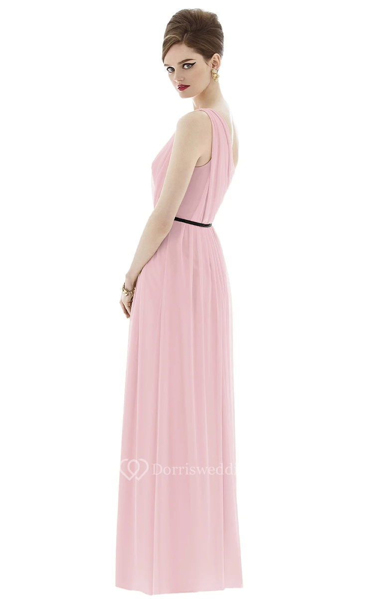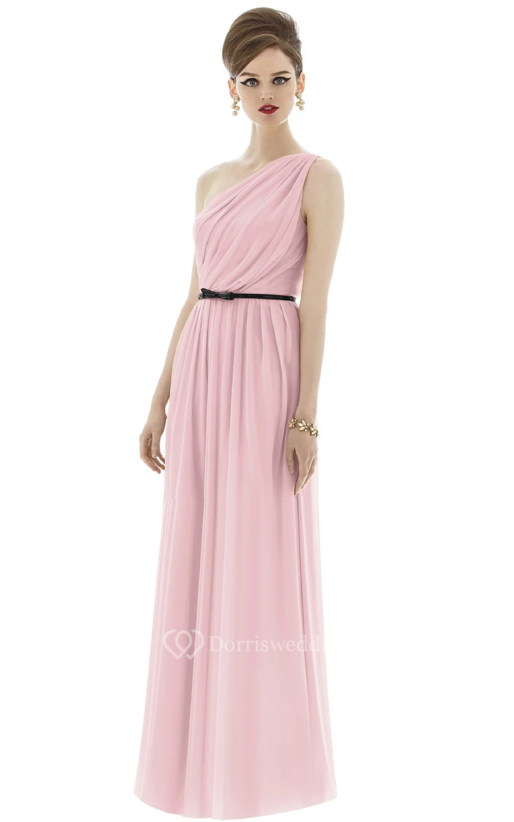 Long One-Shoulder Elegant Chiffon Dress With Bow Sash