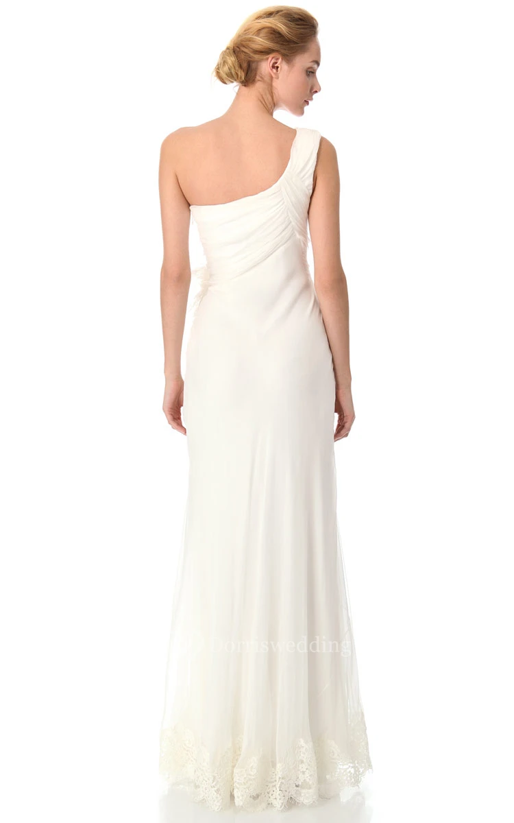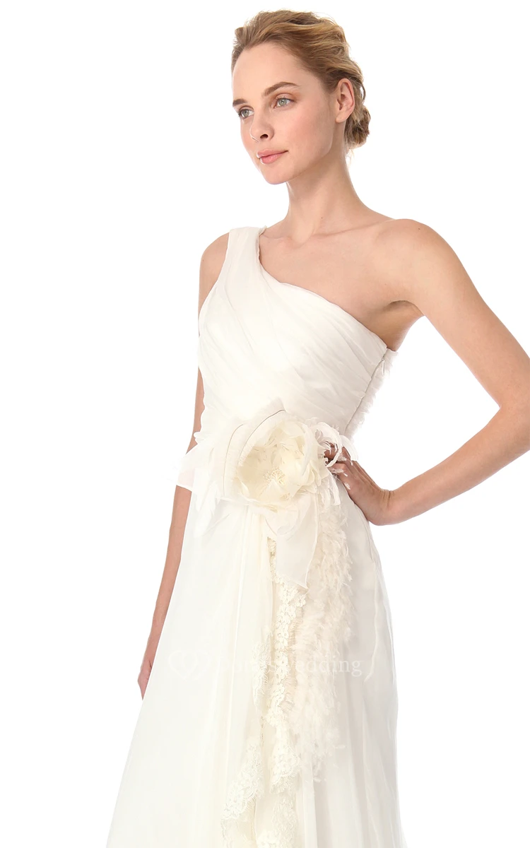 Long One-shoulder Sheath Chiffon Dress With 3D Flower