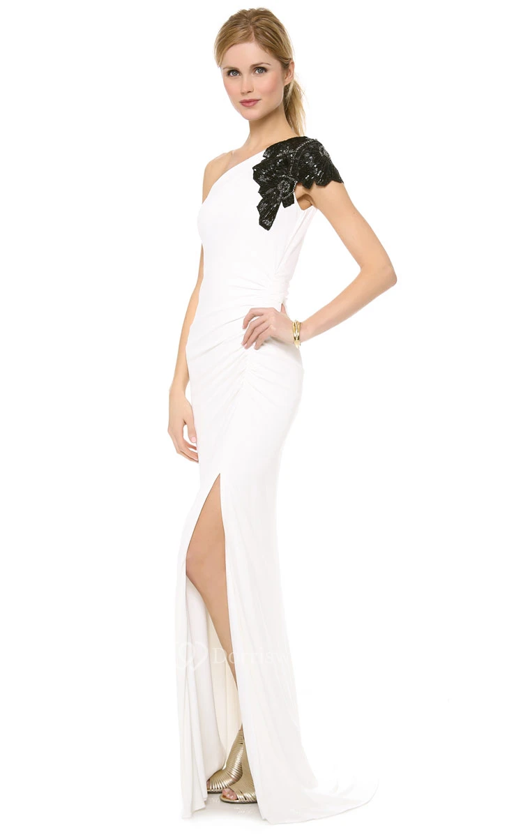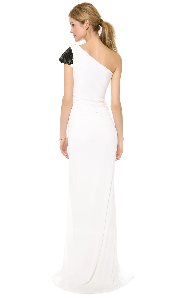 Long One-shoulder Sheath Chiffon Dress With Side-split