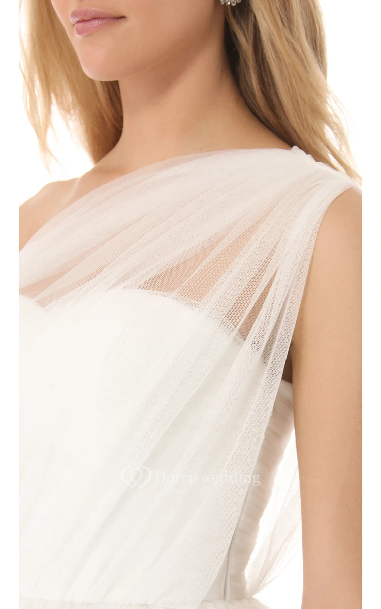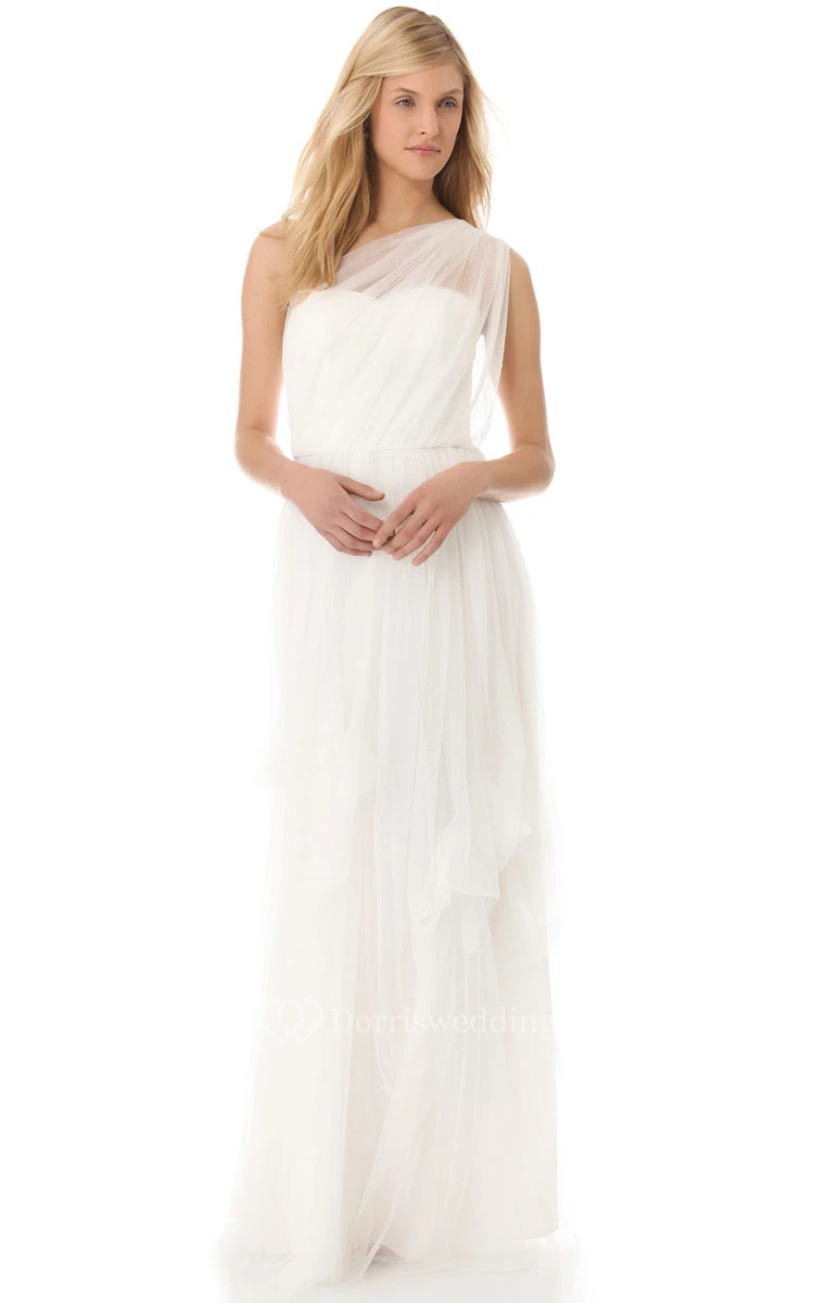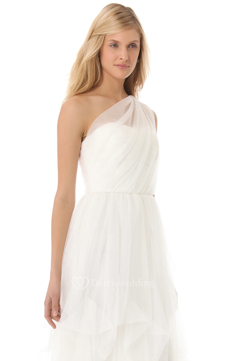 Long One-shoulder Sheath Organza Dress With Ruffles