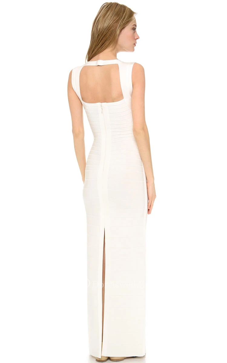 Long Queen Anne Sheath Chiffon Bridesmaid Dress With Keyhole