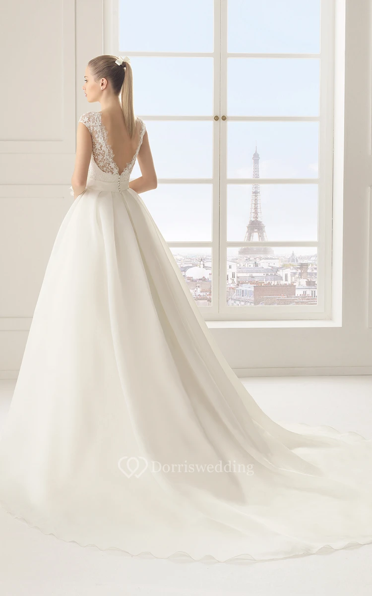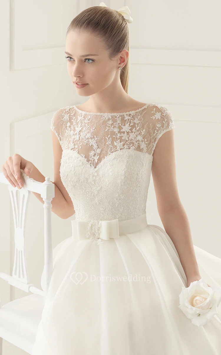 Long Romantic Cap-Sleeved Dress With Lace Bodice
