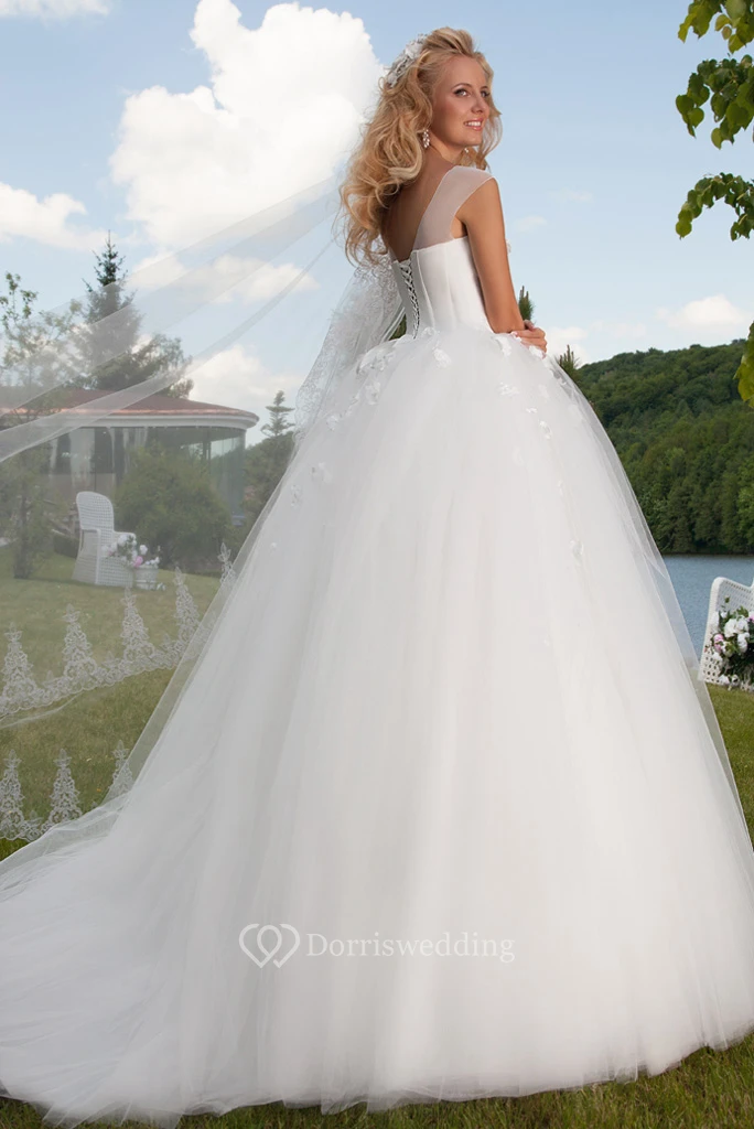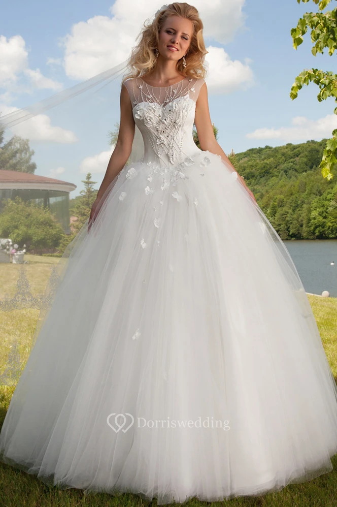 Long Scoop Floral Tulle Wedding Dress With Beading And Corset Back