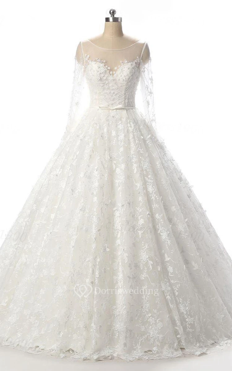 Long Sleeve Backless Lace Weddig Dress With Illusion