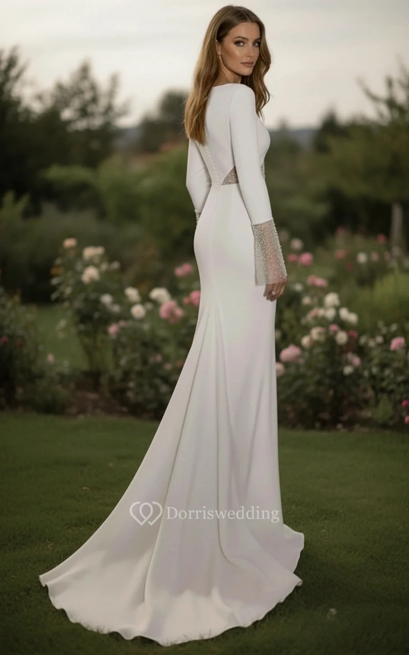 Long Sleeve High Slit Elegant Sheath Wedding Dress with Lace