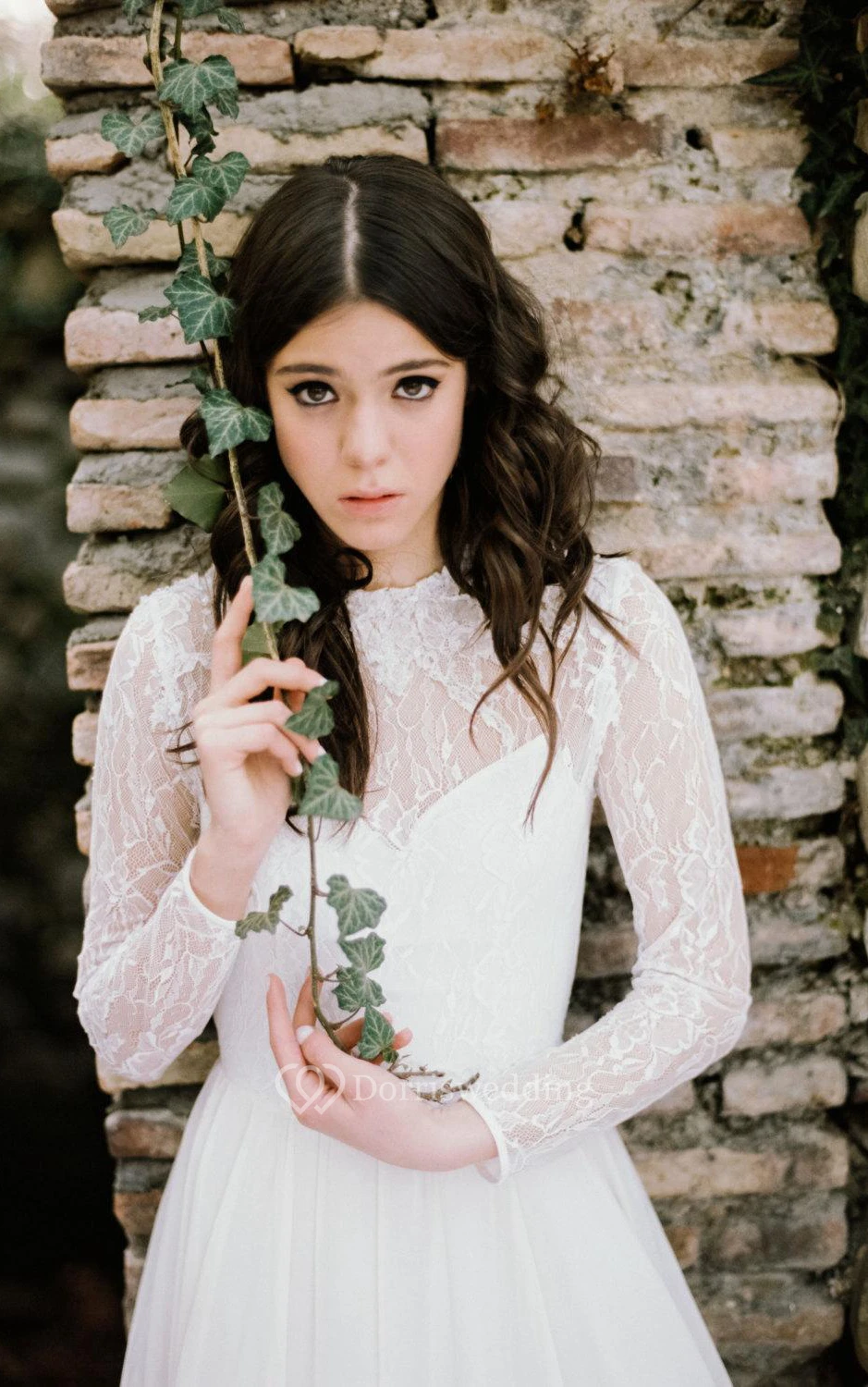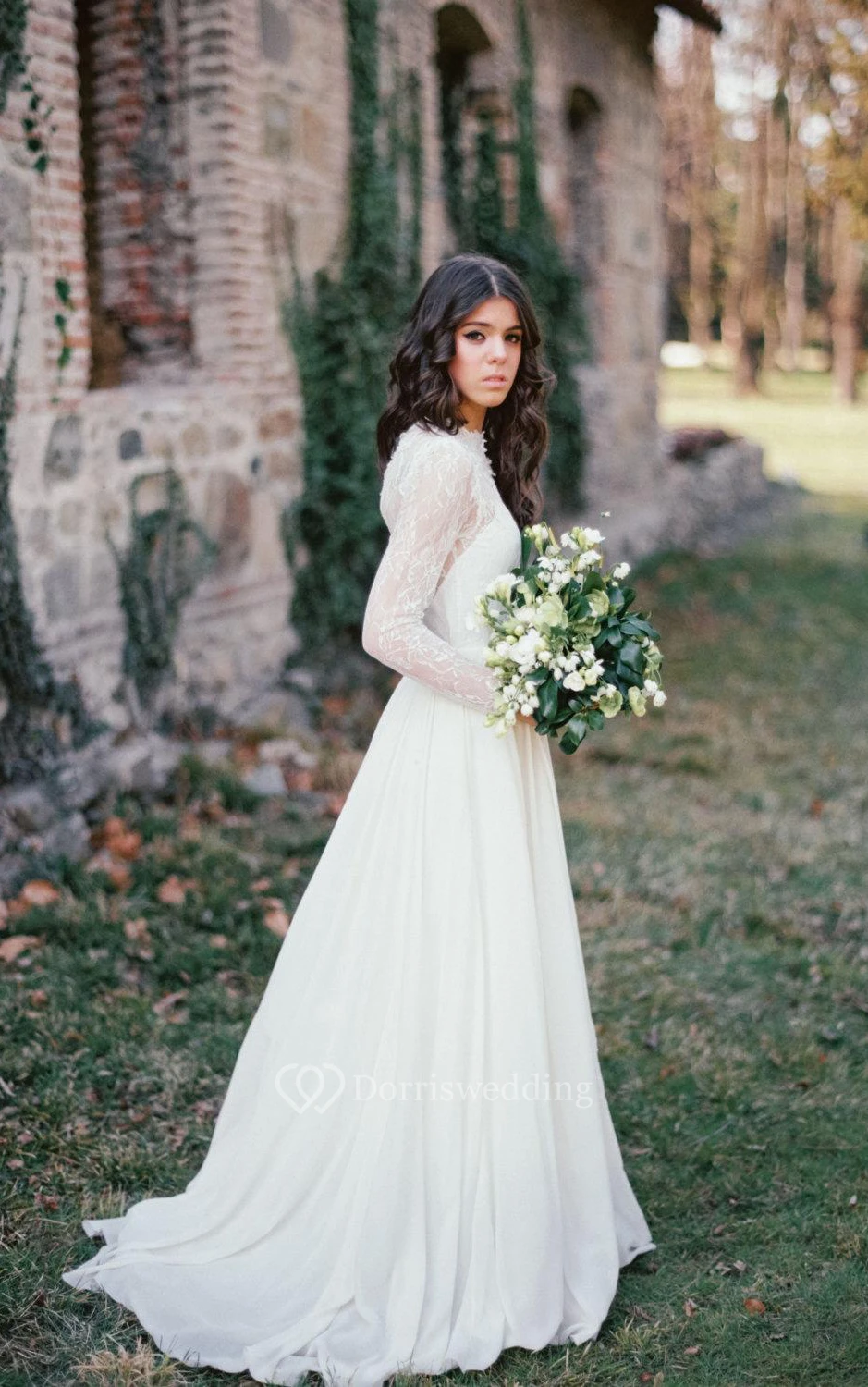 Long Sleeve Lace Weddig Dress With Corset Back