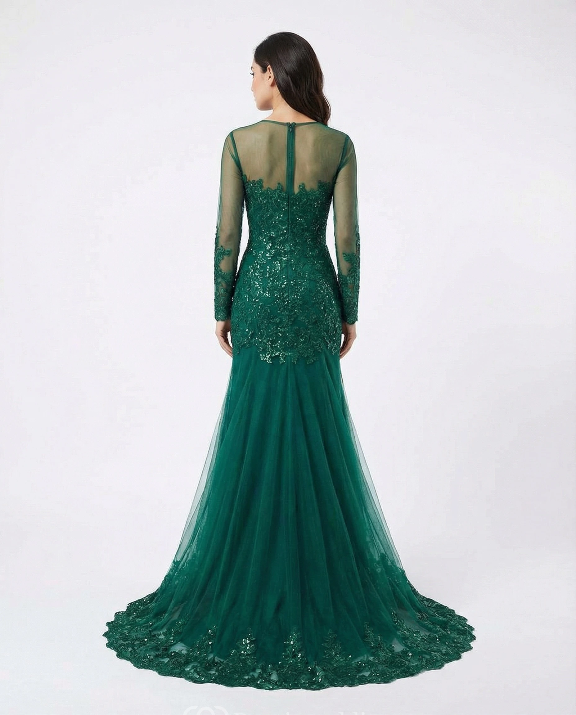 Long Sleeve Lace Mermaid Gown with Sweep Train