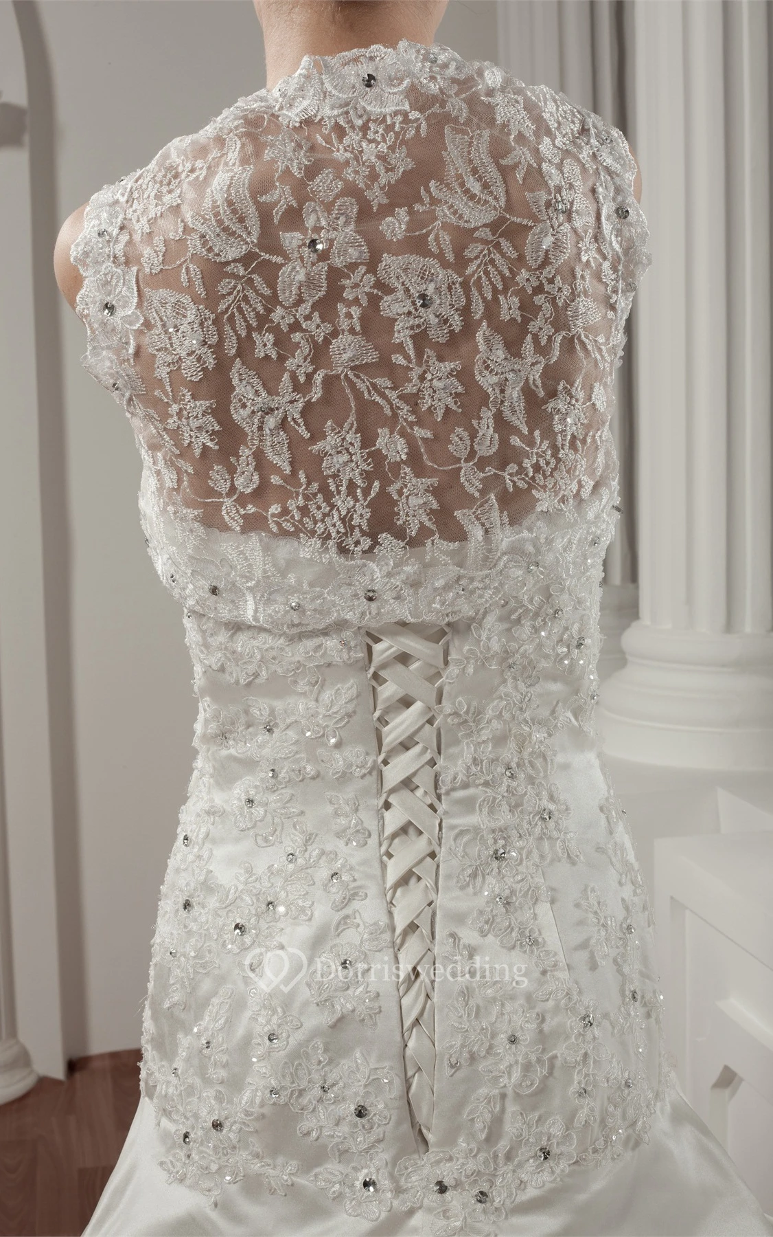 Long-Sleeve Lace Pick-Up Bolero and Dress With Beading