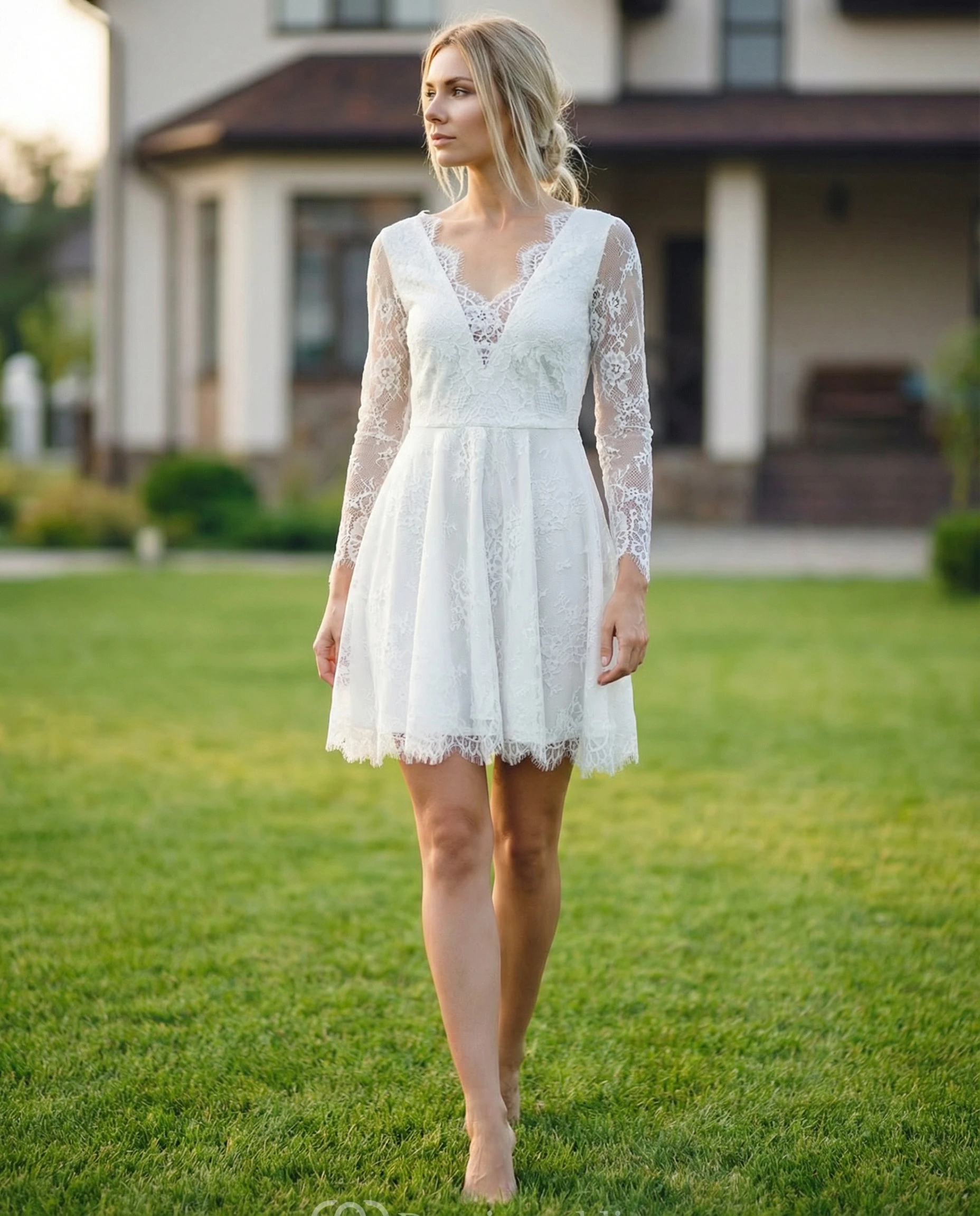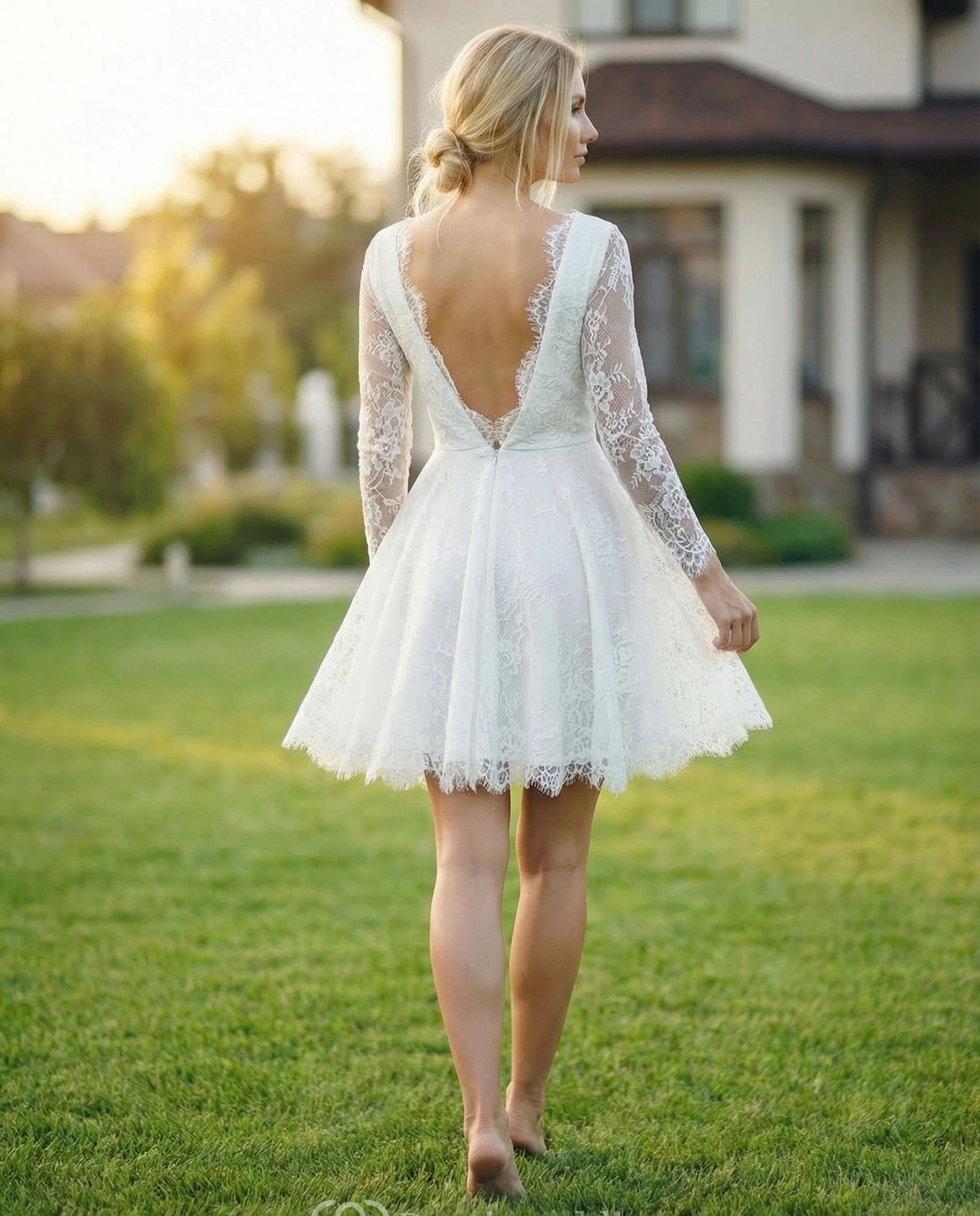 Long Sleeve Lace Short Wedding Gown