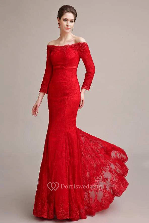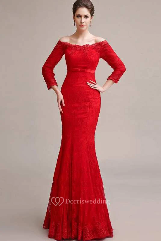 Long Sleeve Off The Shoulder Mermaid Long Lace Dress