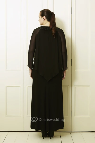 Long-Sleeve Scoop-Neck Ankle-Length Chiffon Plus Size Prom Dress