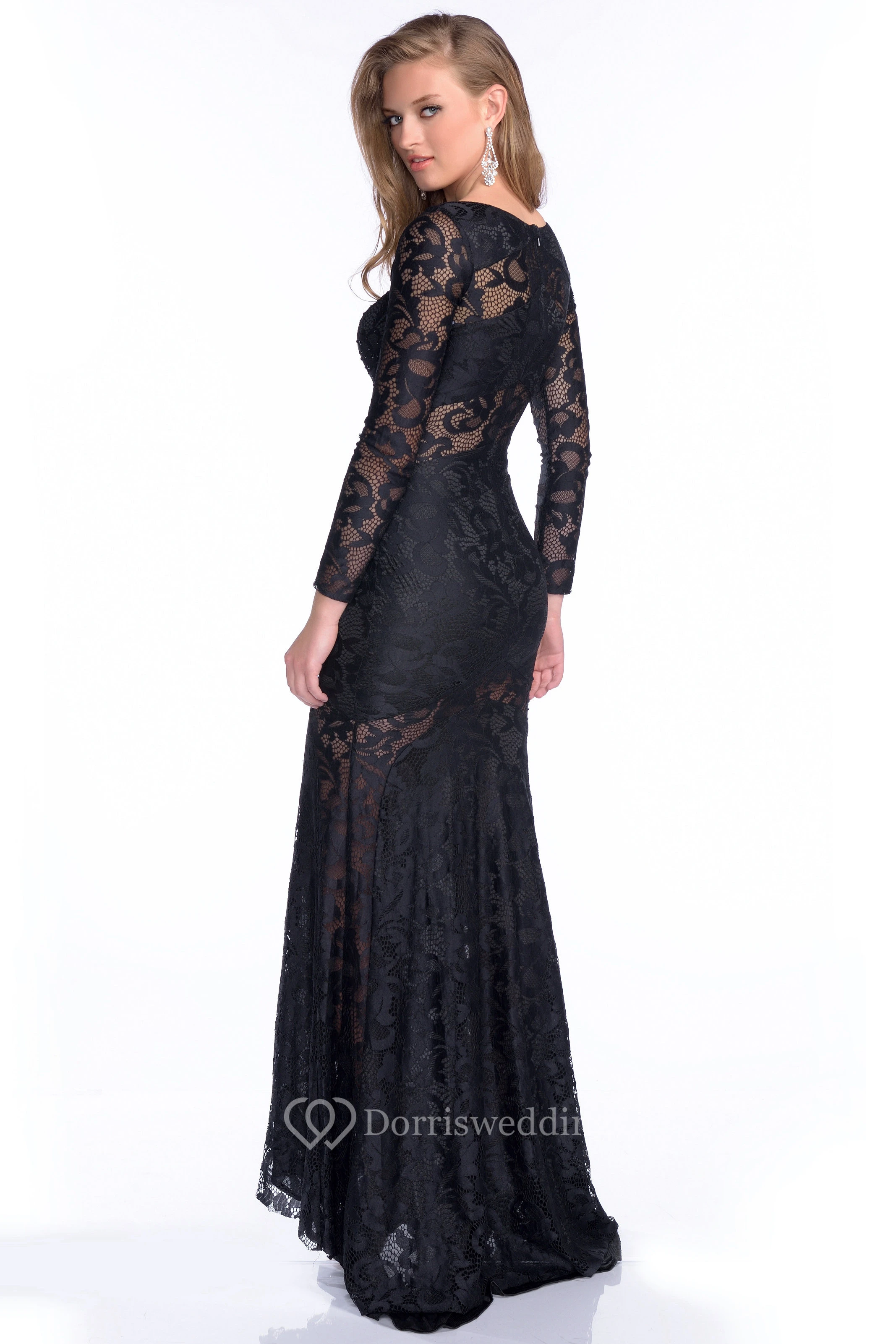 Long Sleeve Trumpet Lace Prom Dress With Rhinestones