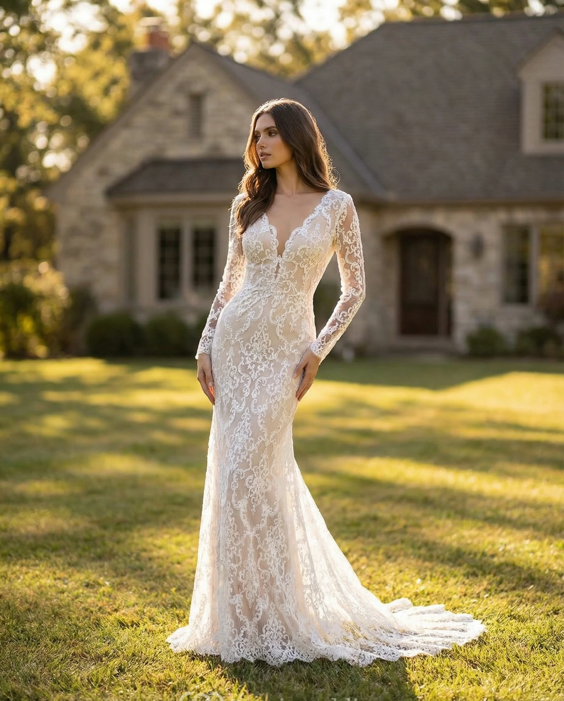 Long Sleeve White Open Back Bohemian Bridal Dress