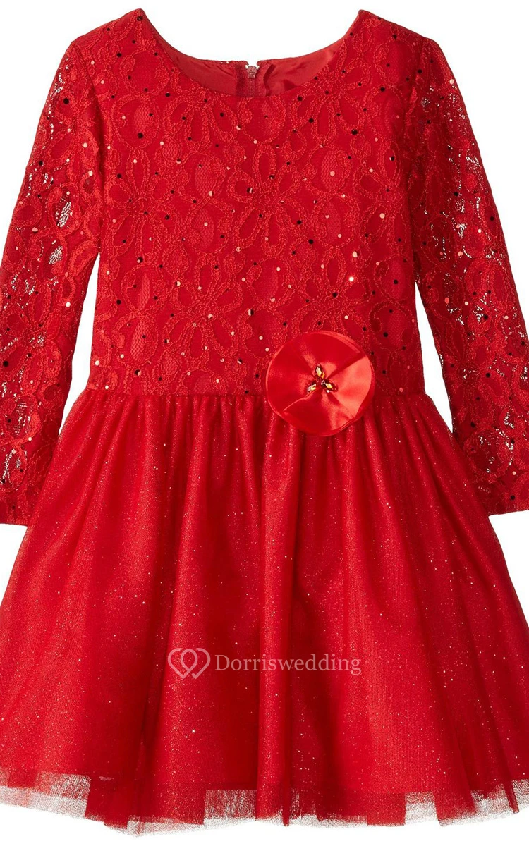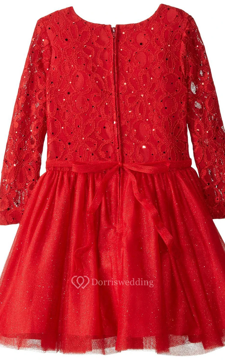 Long-sleeved A-line Sequined Dress With Pleats and Bow