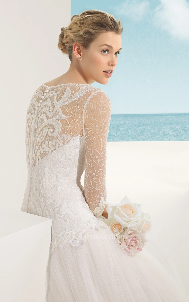 Long-Sleeved Delicate Ruffled Dress With Lacy Bodice