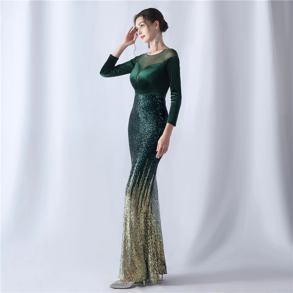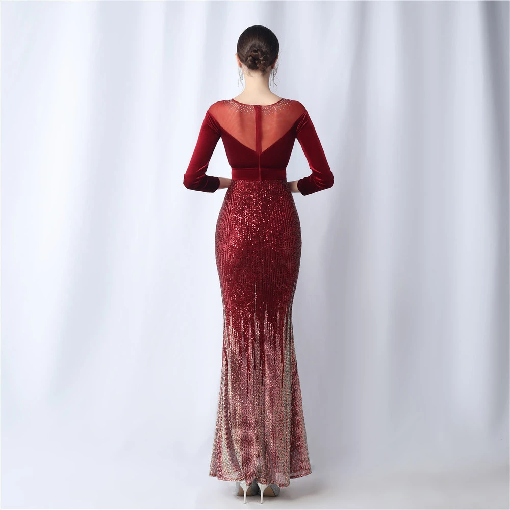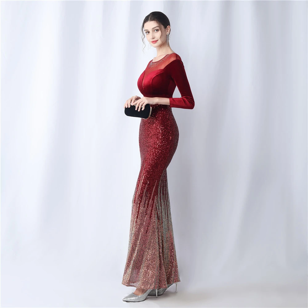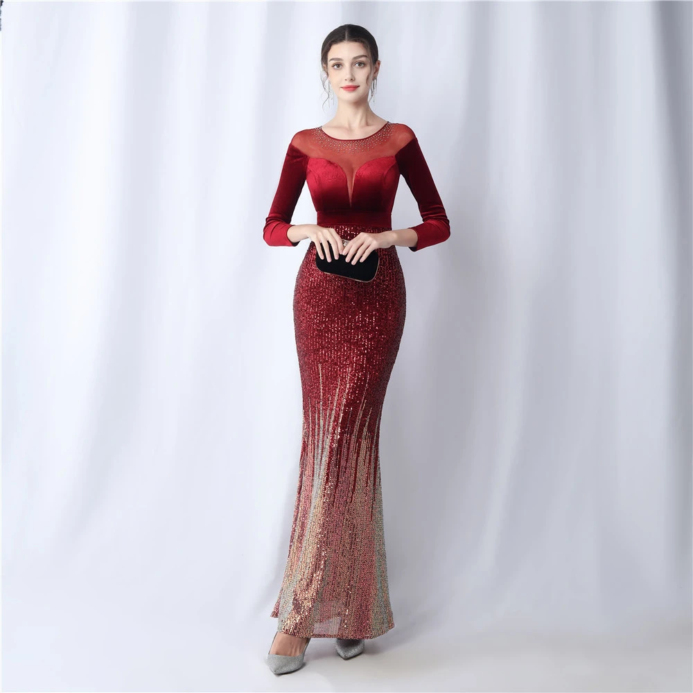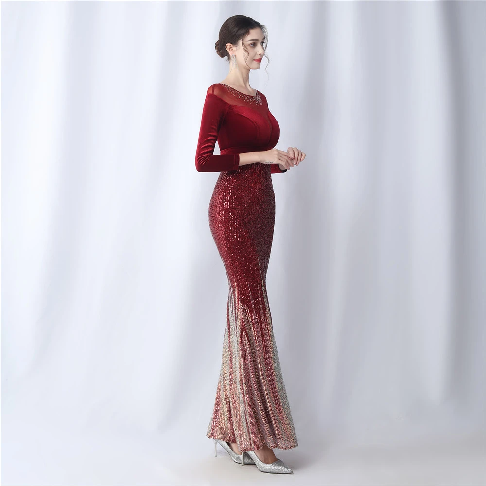 Long-Sleeved Fishtail Evening Dress High-End Atmosphere Elegant Banquet Temperament Velvet Aura Queen