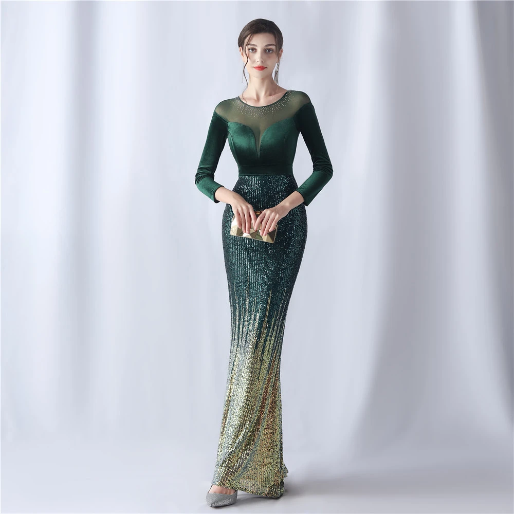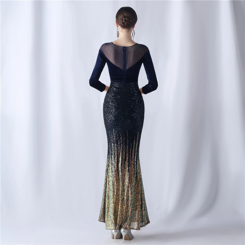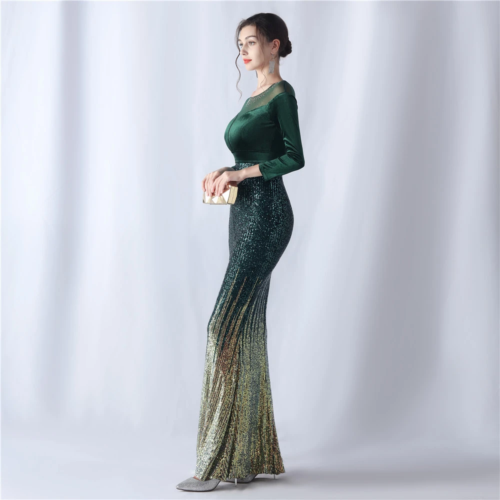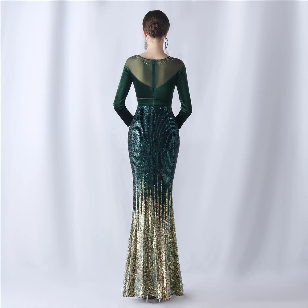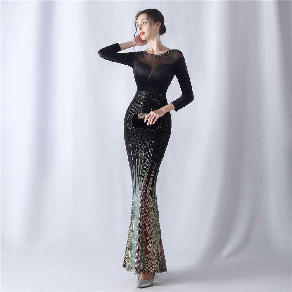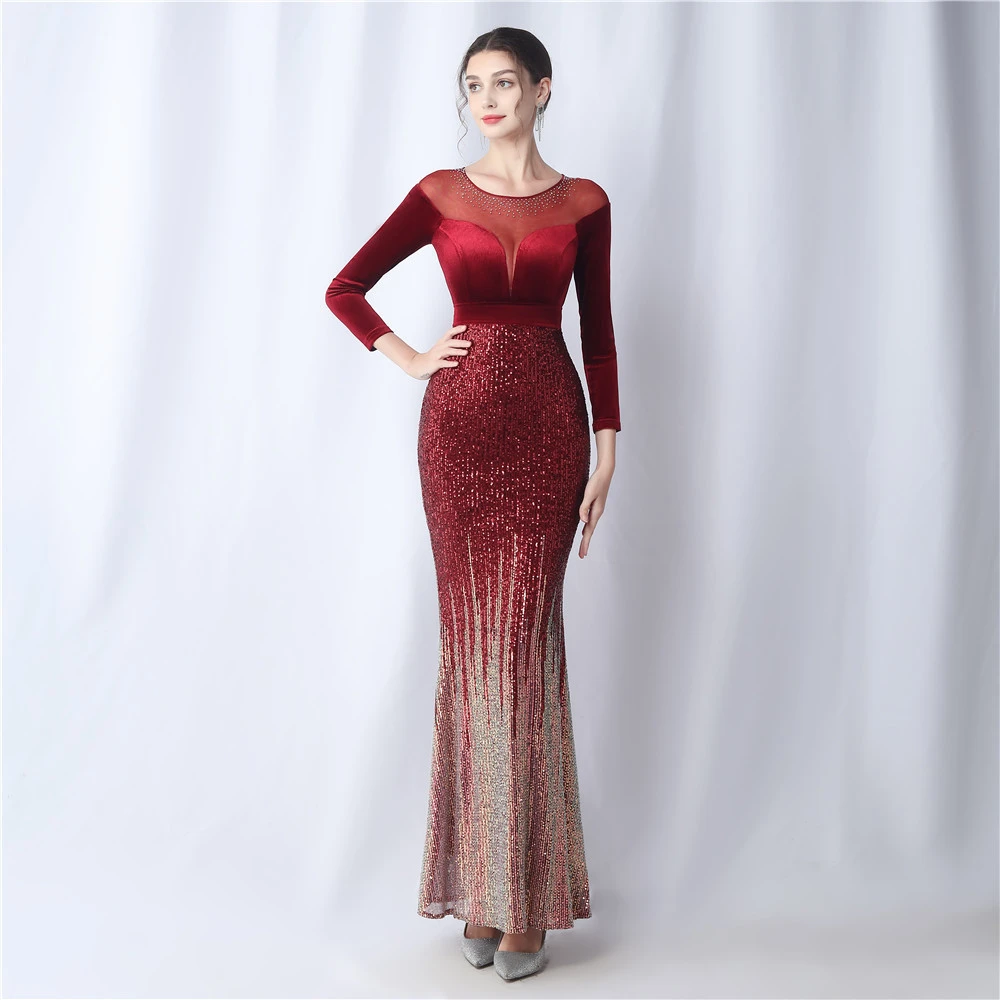 Long-Sleeved Fishtail Evening Dress High-End Atmosphere Elegant Banquet Temperament Velvet Aura Queen