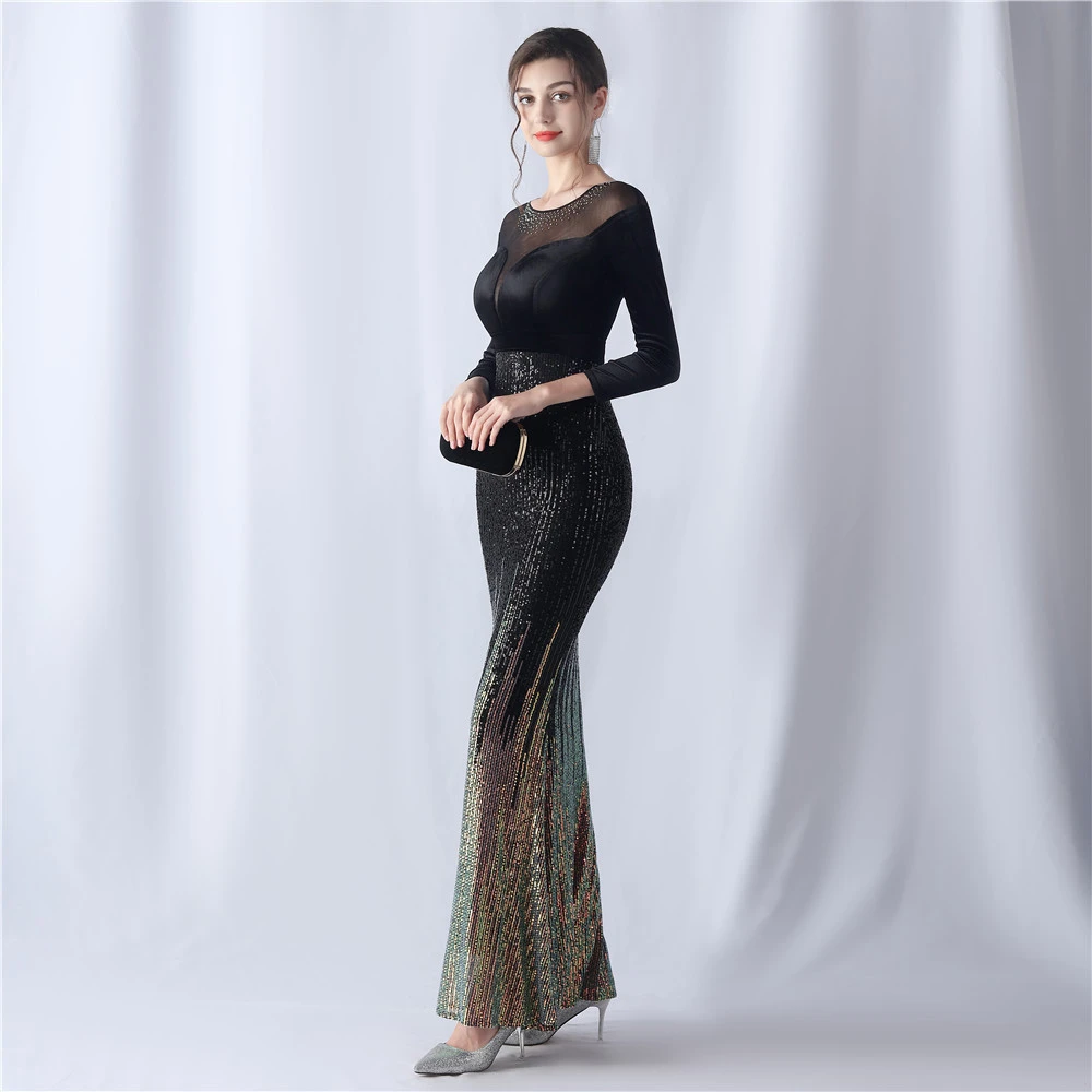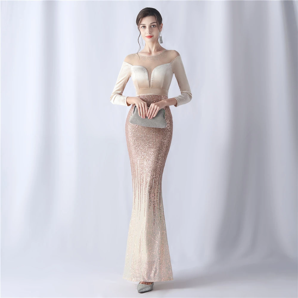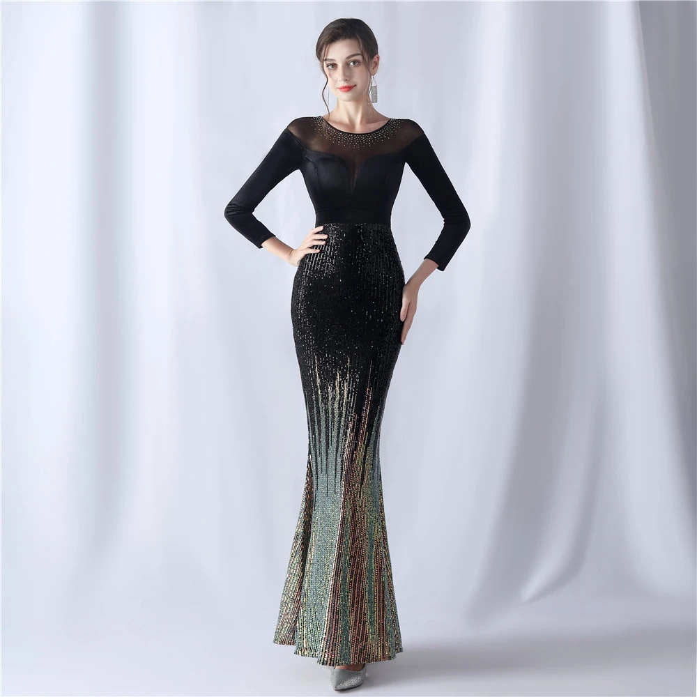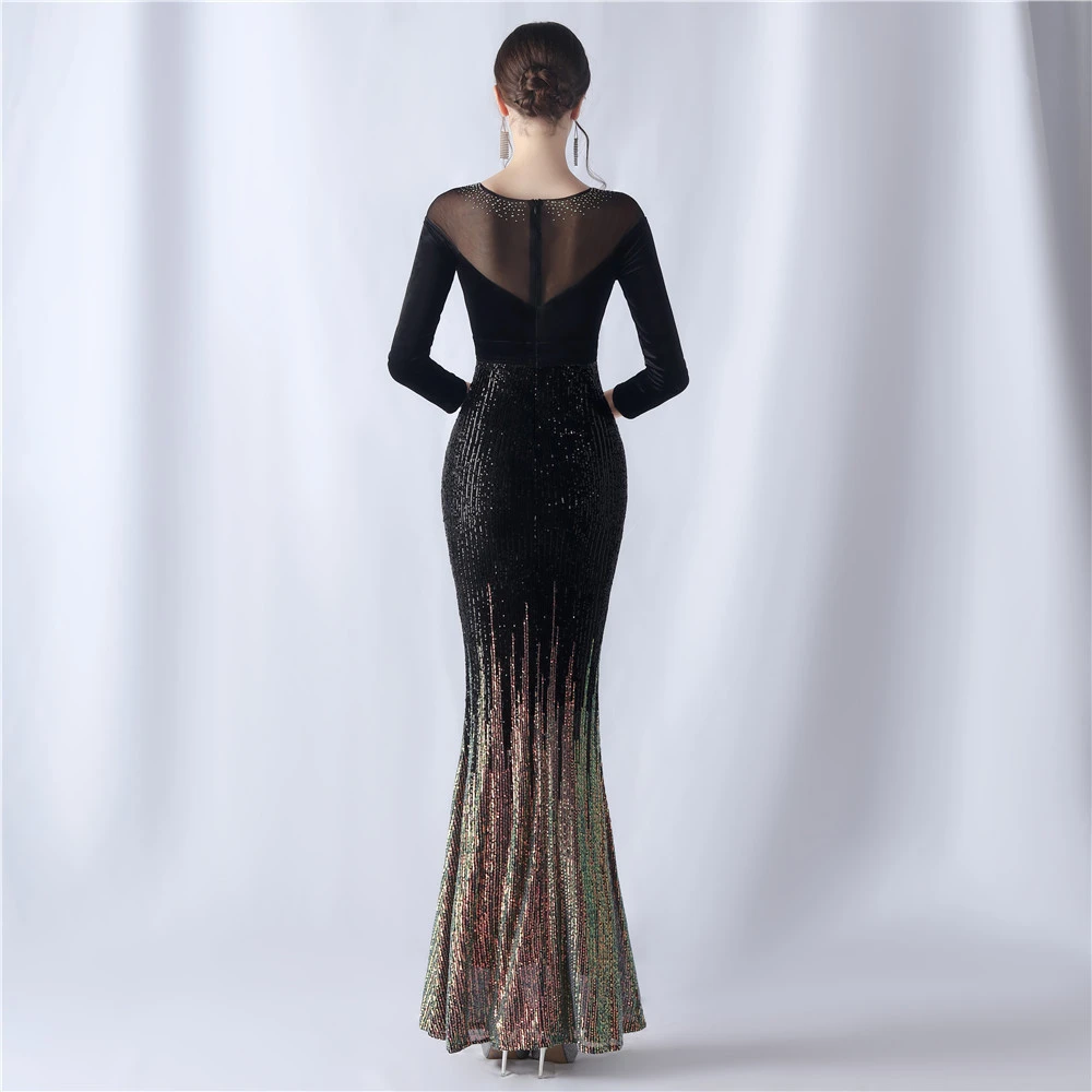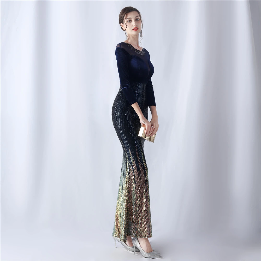 Long-Sleeved Fishtail Evening Dress High-End Atmosphere Elegant Banquet Temperament Velvet Aura Queen