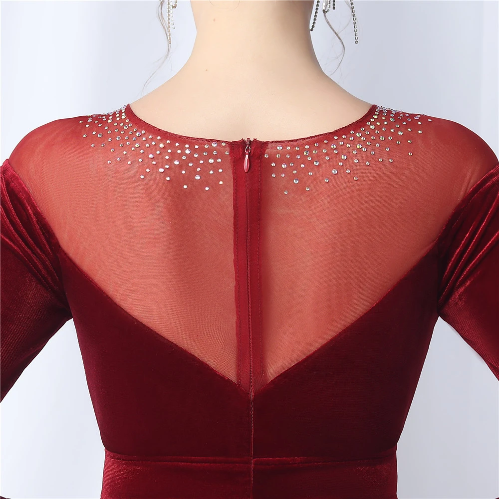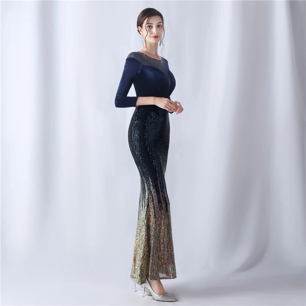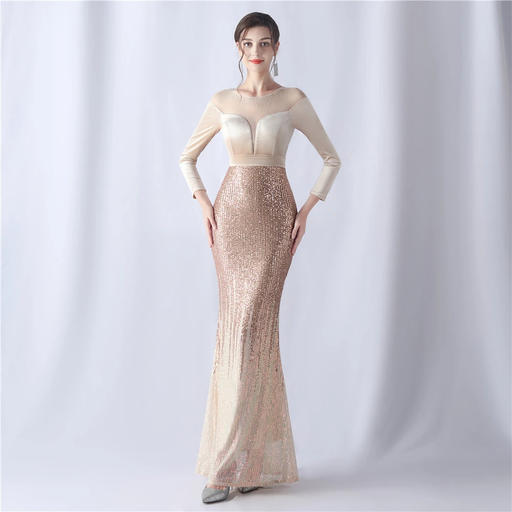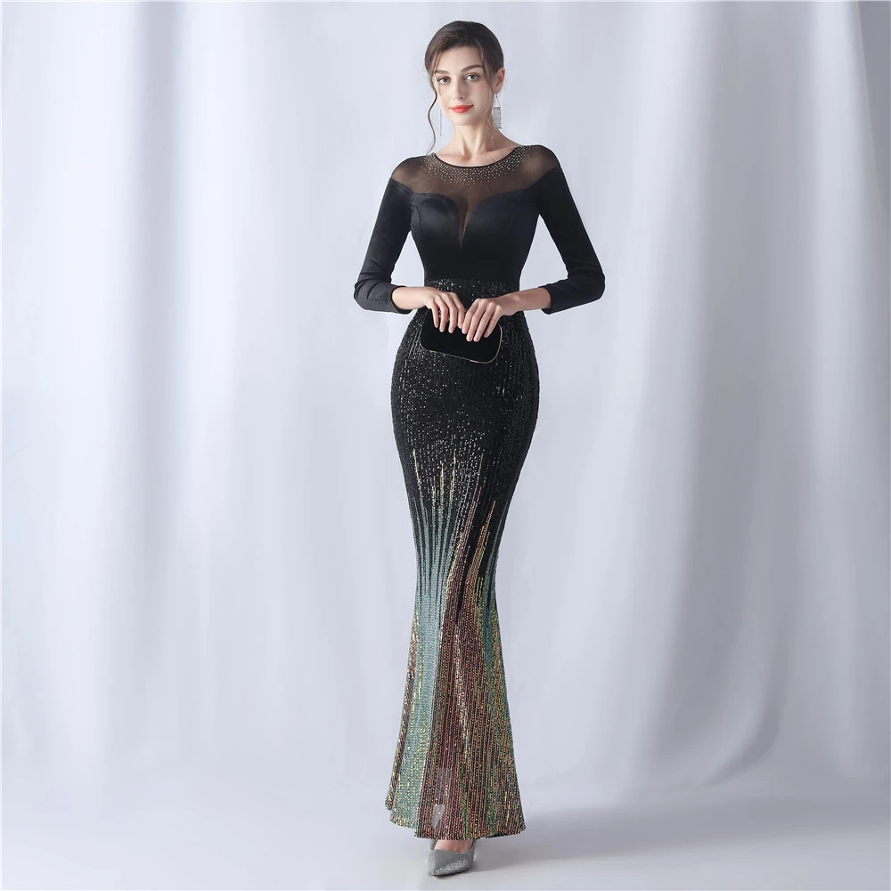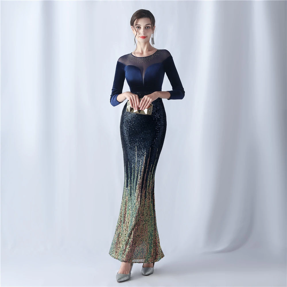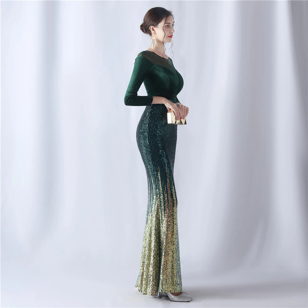 Long-Sleeved Fishtail Evening Dress High-End Atmosphere Elegant Banquet Temperament Velvet Aura Queen