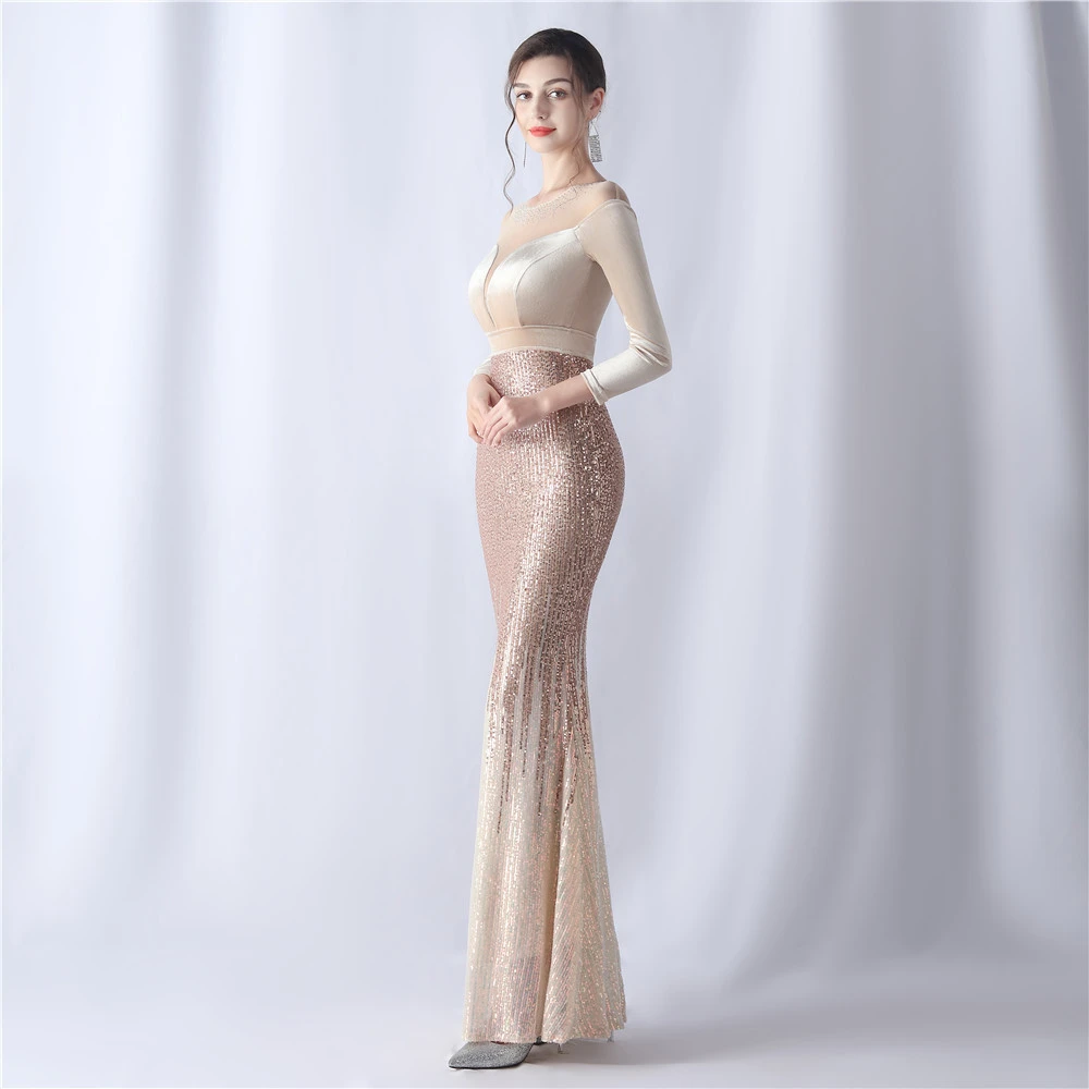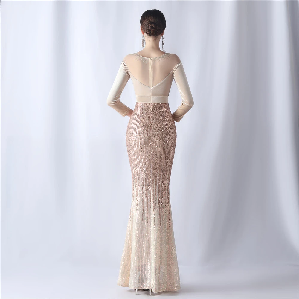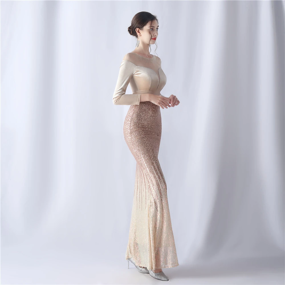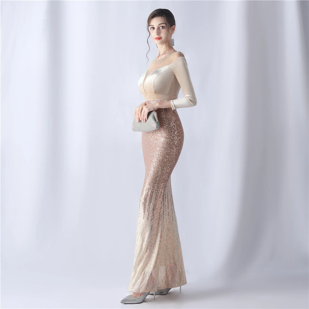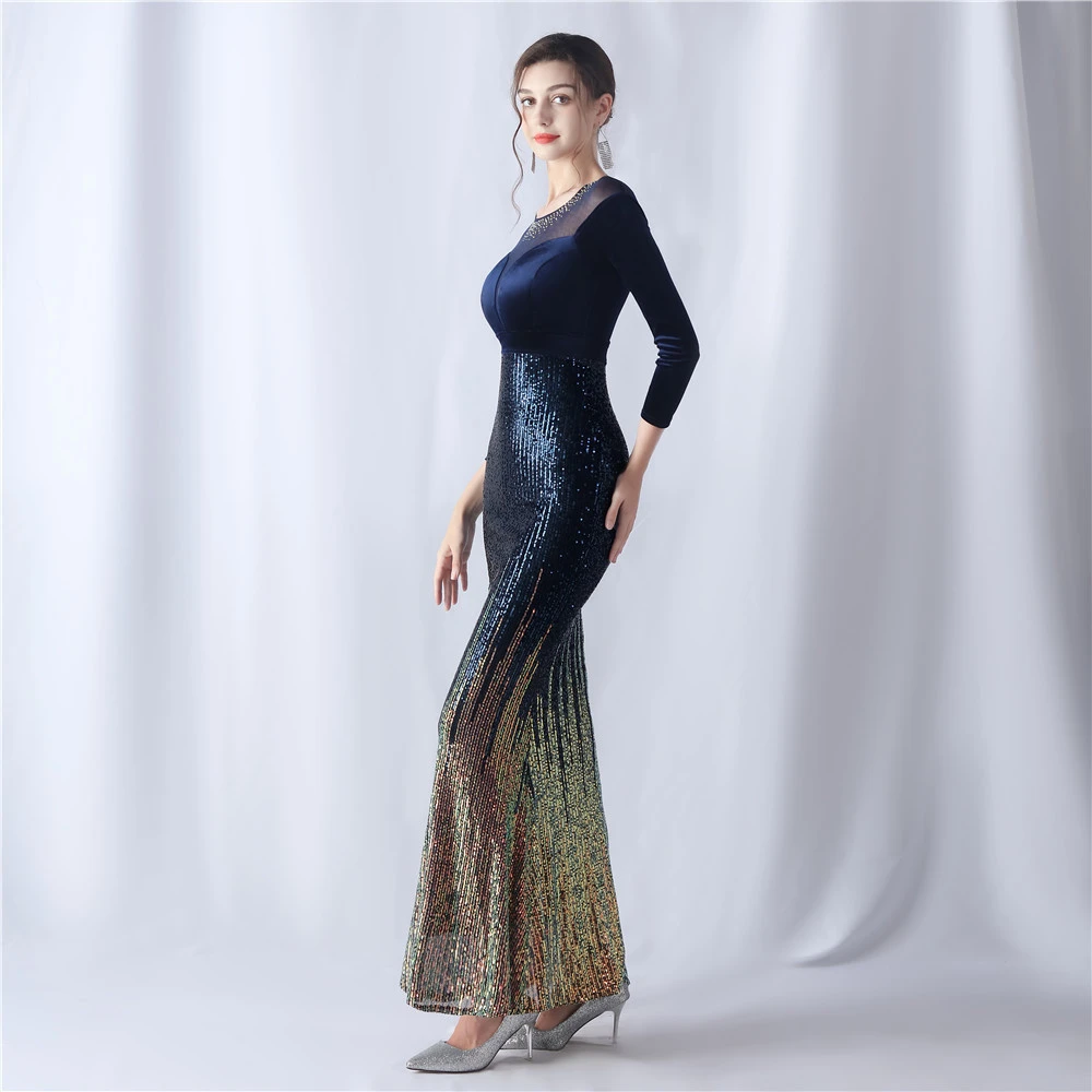 Long-Sleeved Fishtail Evening Dress High-End Atmosphere Elegant Banquet Temperament Velvet Aura Queen