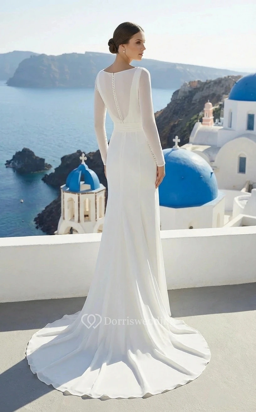 Long-Sleeved Vow Renewal Dress with Bow Detail