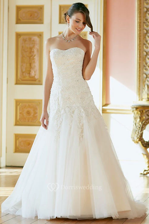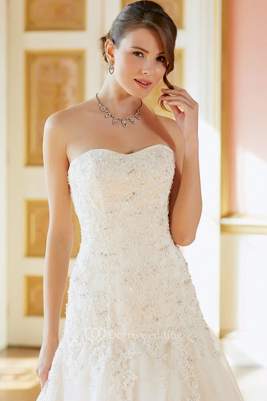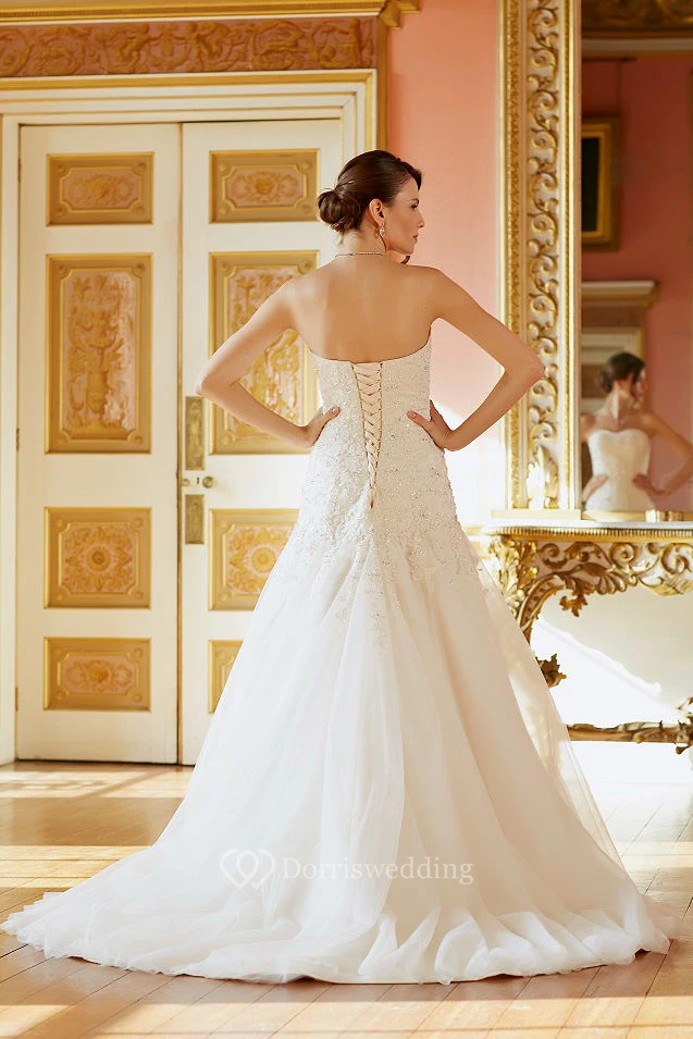 Long Strapless Beaded Sleeveless Tulle Wedding Dress