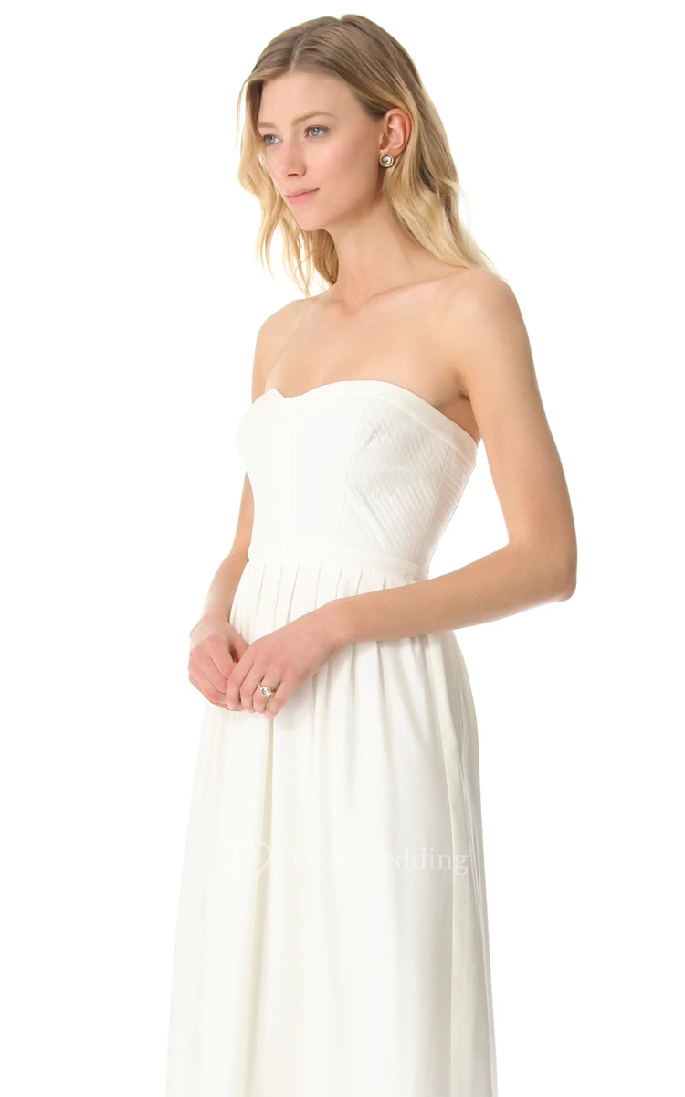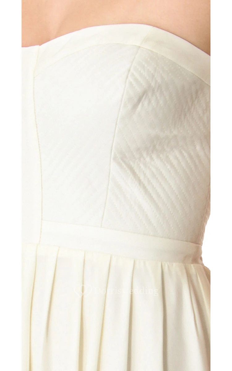 Long Strapless Pleated Sheath Chiffon Dress