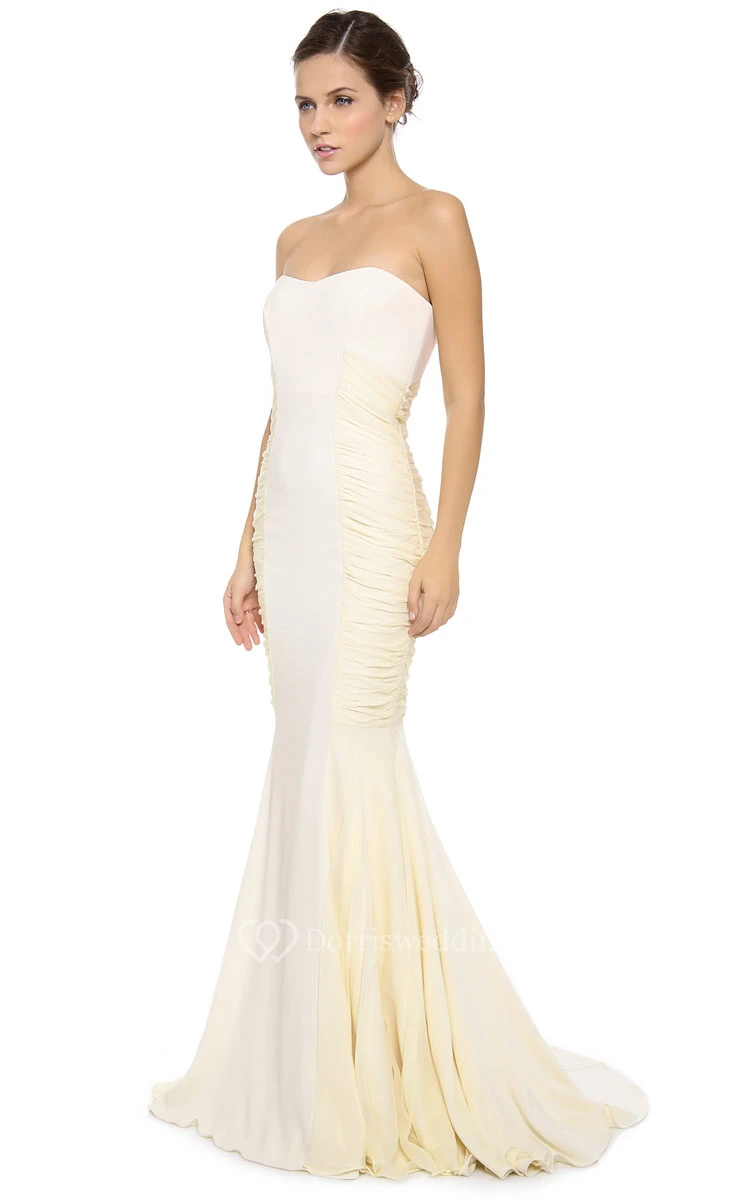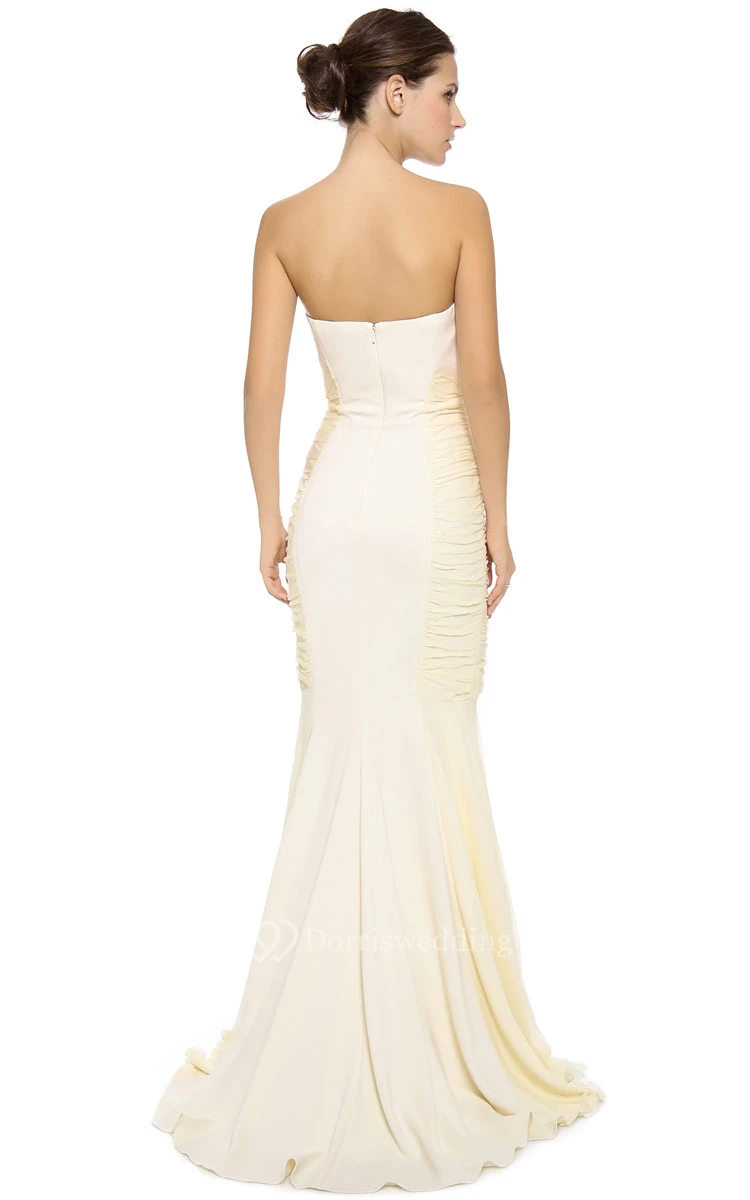 Long Strapless Side-pleated Sheath Chiffon Dress
