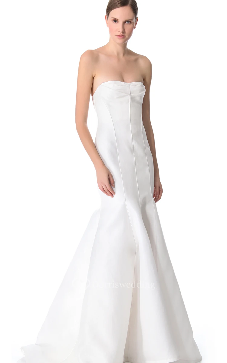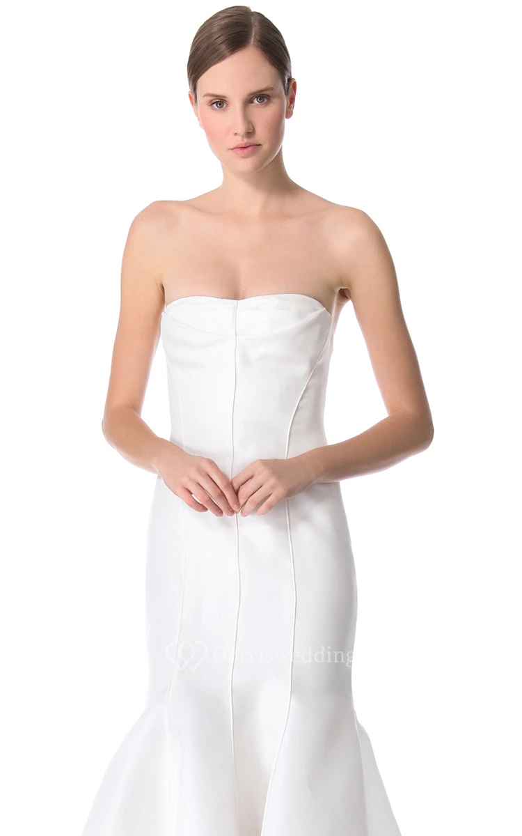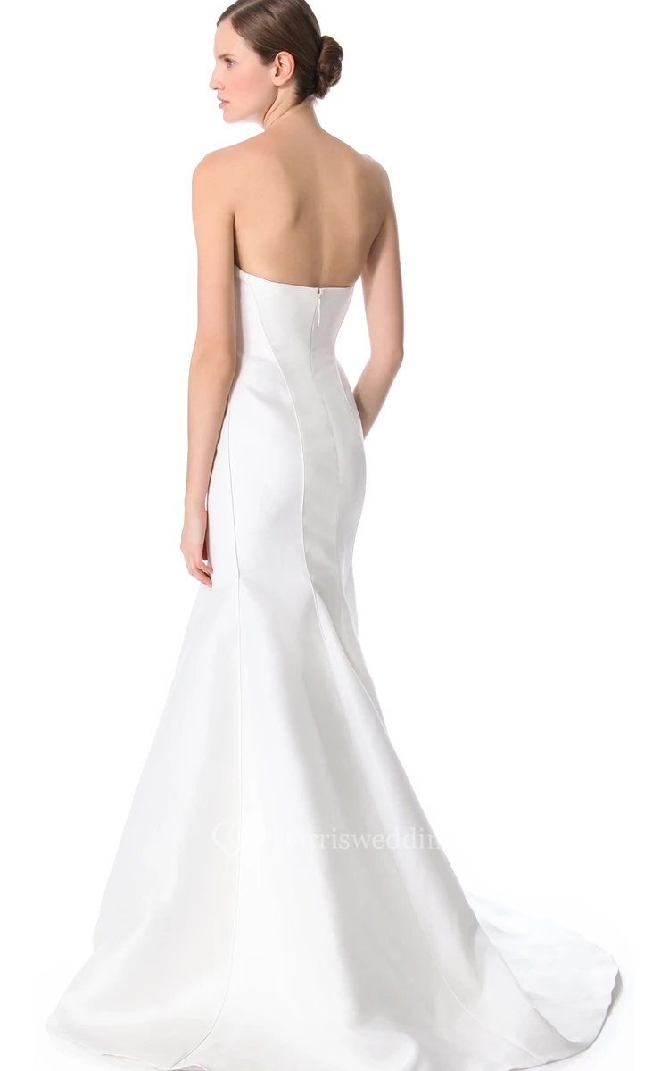 Long Strapless Trumpet Satin Dress With Backless Style