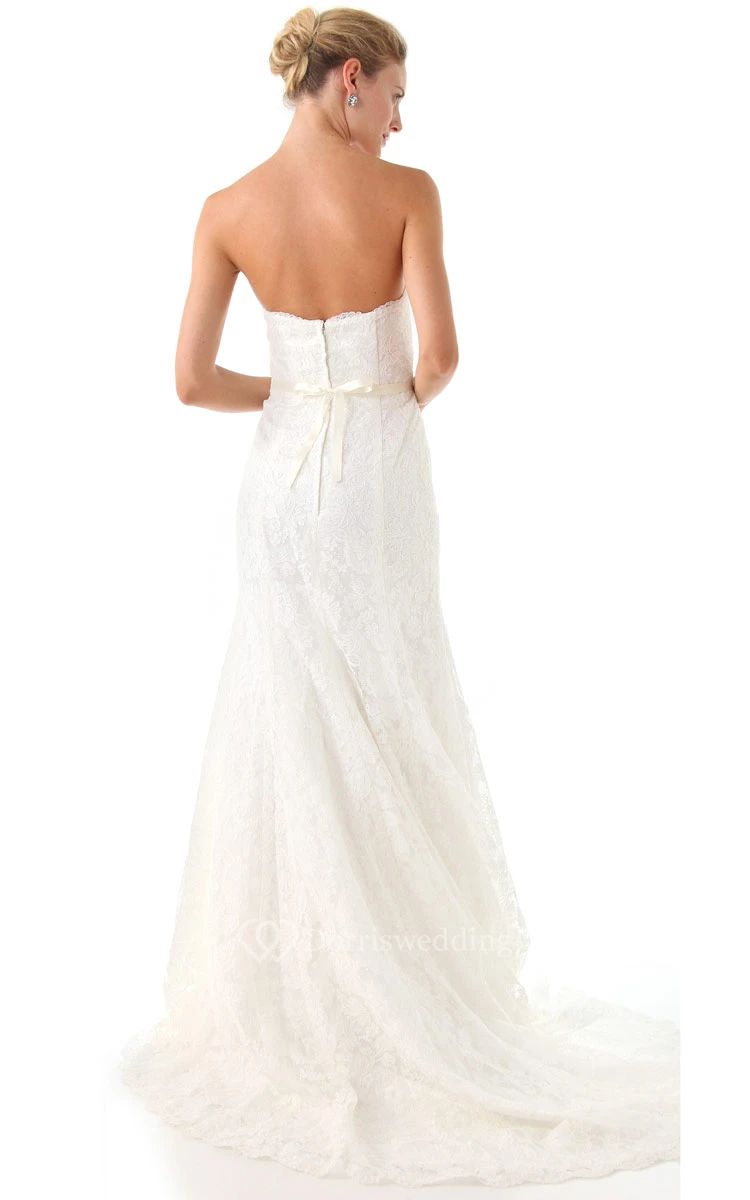 Long Sweetheart A-line Lace Dress With Beaded Belt