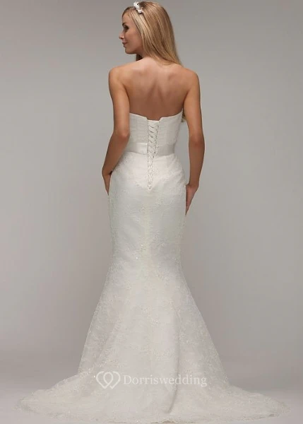 Long Sweetheart Beaded Lace Wedding Dress With Sweep Train And Corset Back