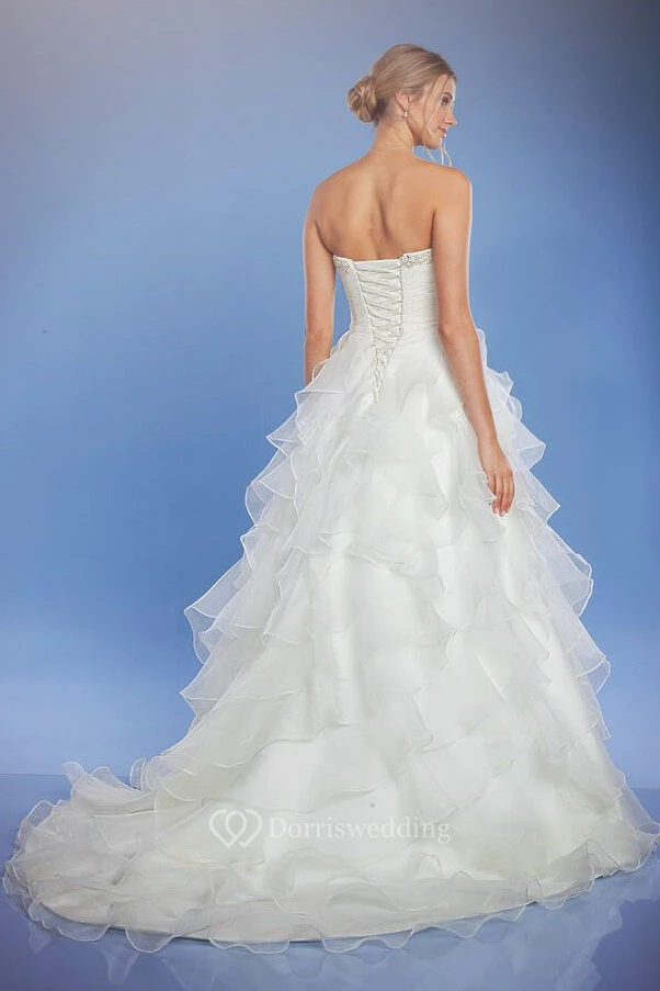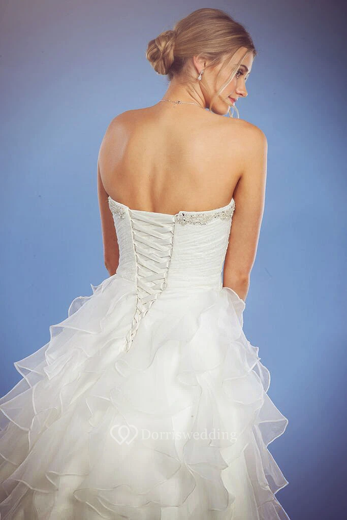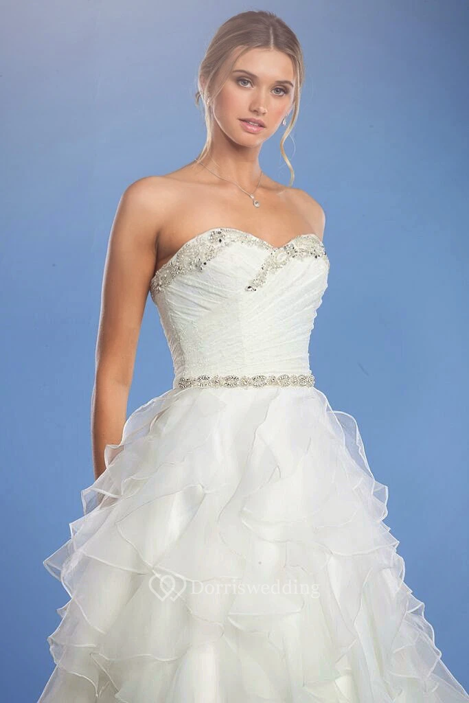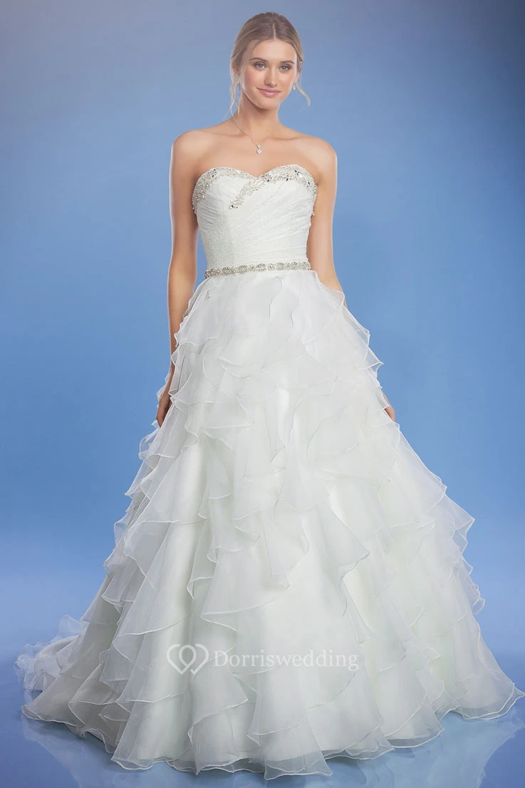 Long Sweetheart Criss-Cross Jeweled Organza Wedding Dress