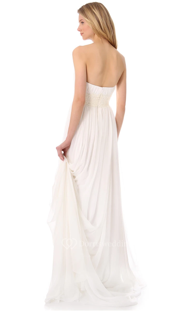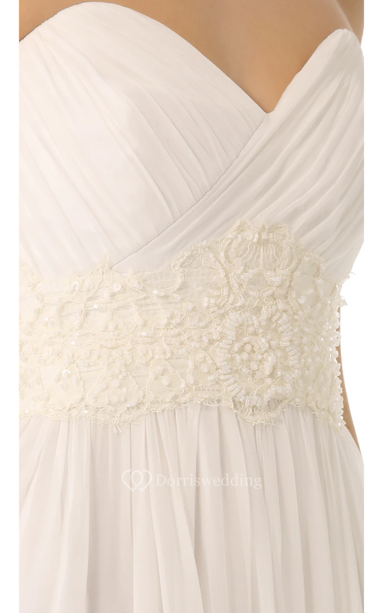 Long Sweetheart Empire Chiffon Dress With Chapel Train