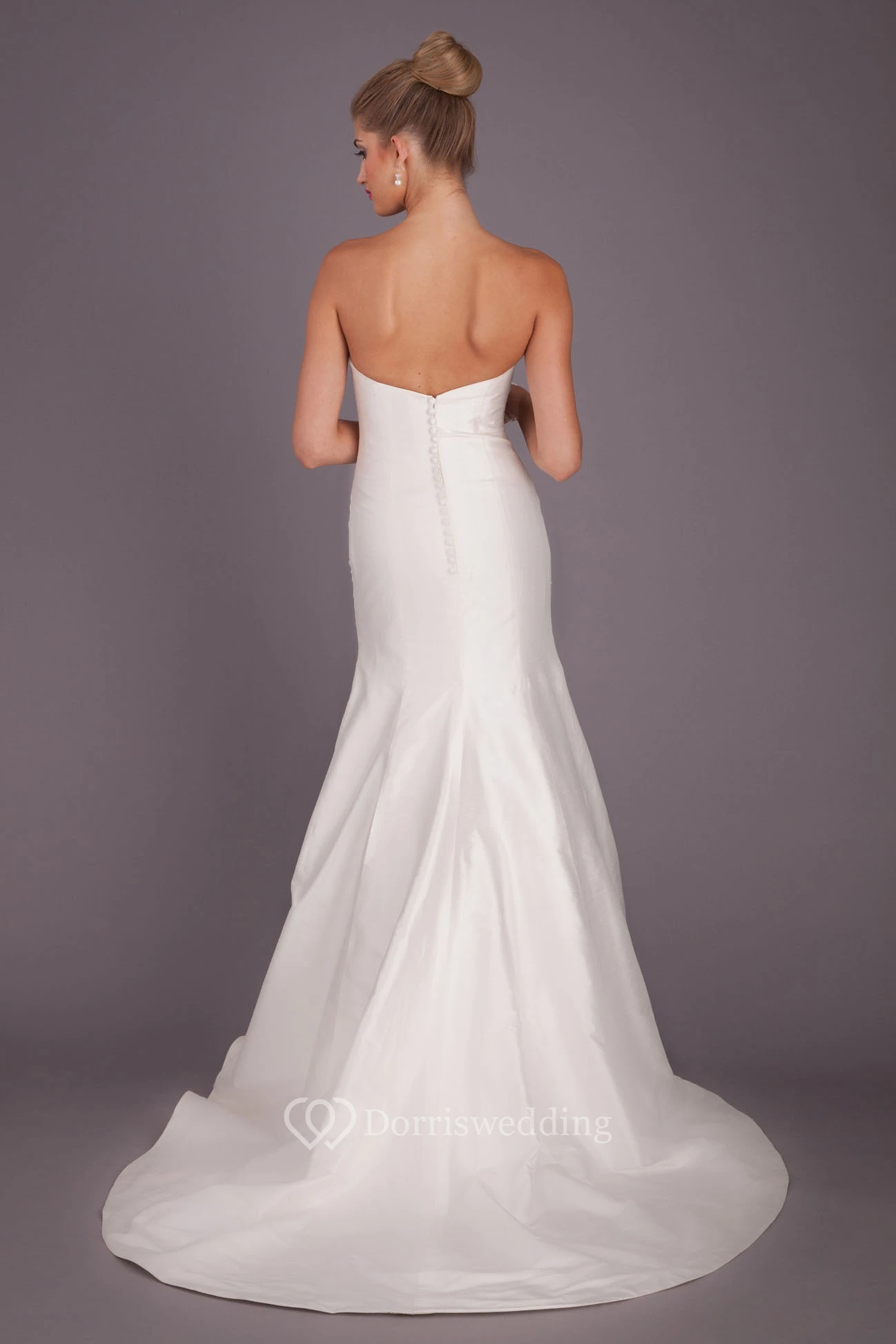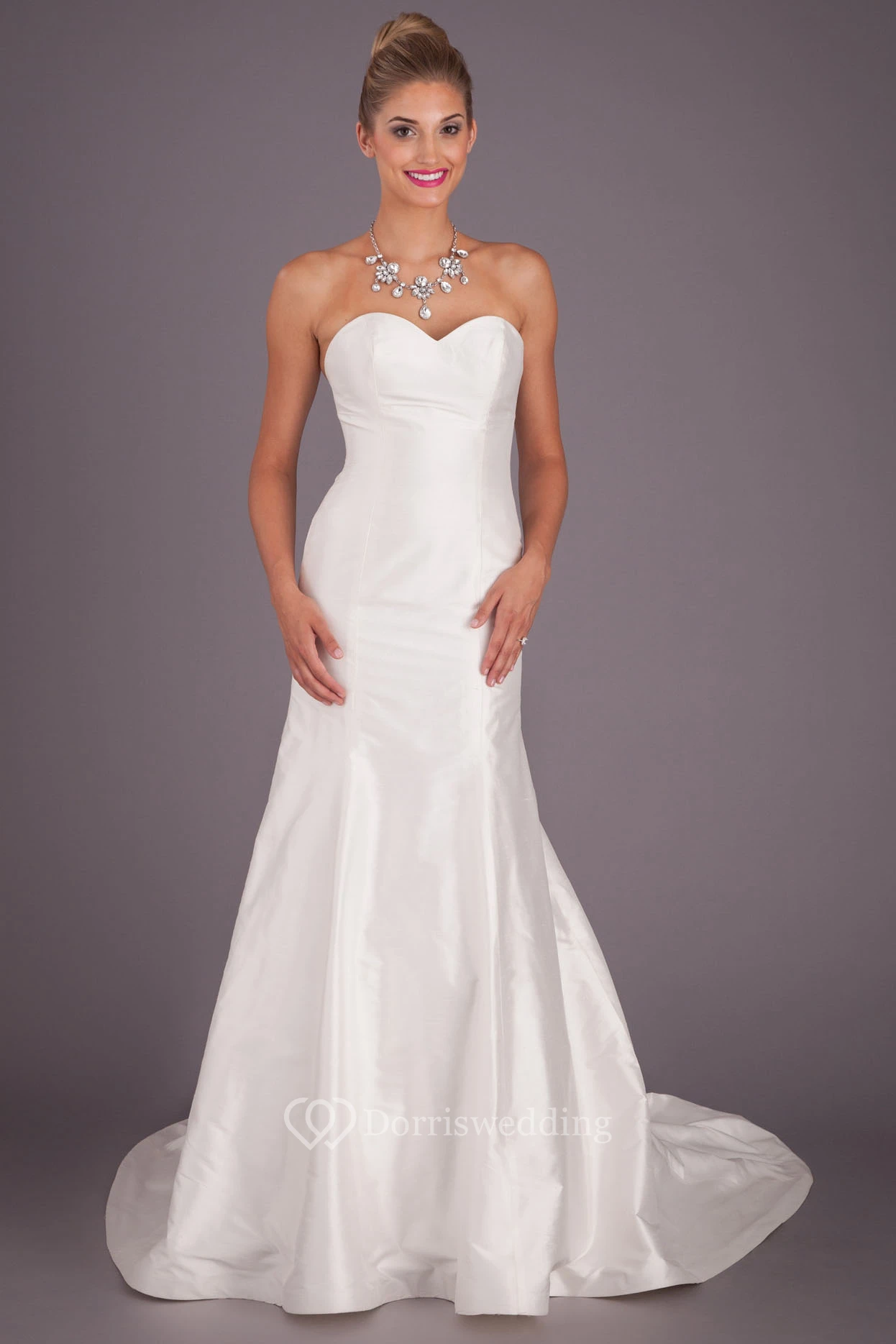 Long Sweetheart Satin Wedding Dress With Brush Train