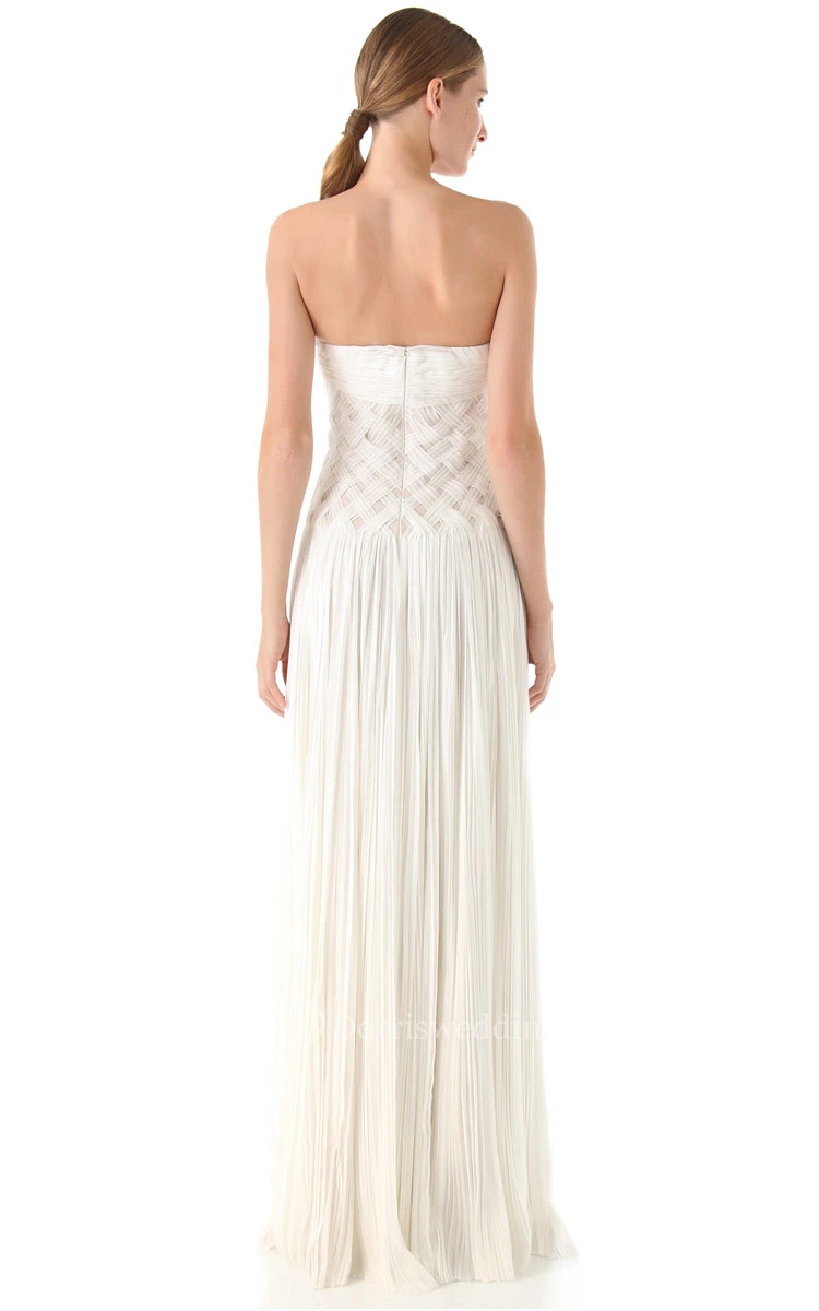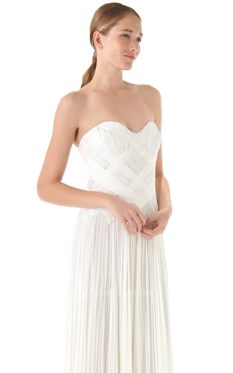 Long Sweetheart Sheath Chiffon Dress With Criss-Cross Pleats
