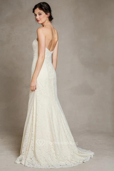 Long Sweetheart Sleeveless Lace Wedding Dress