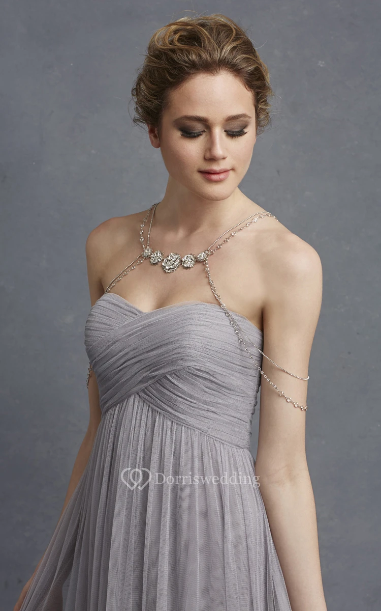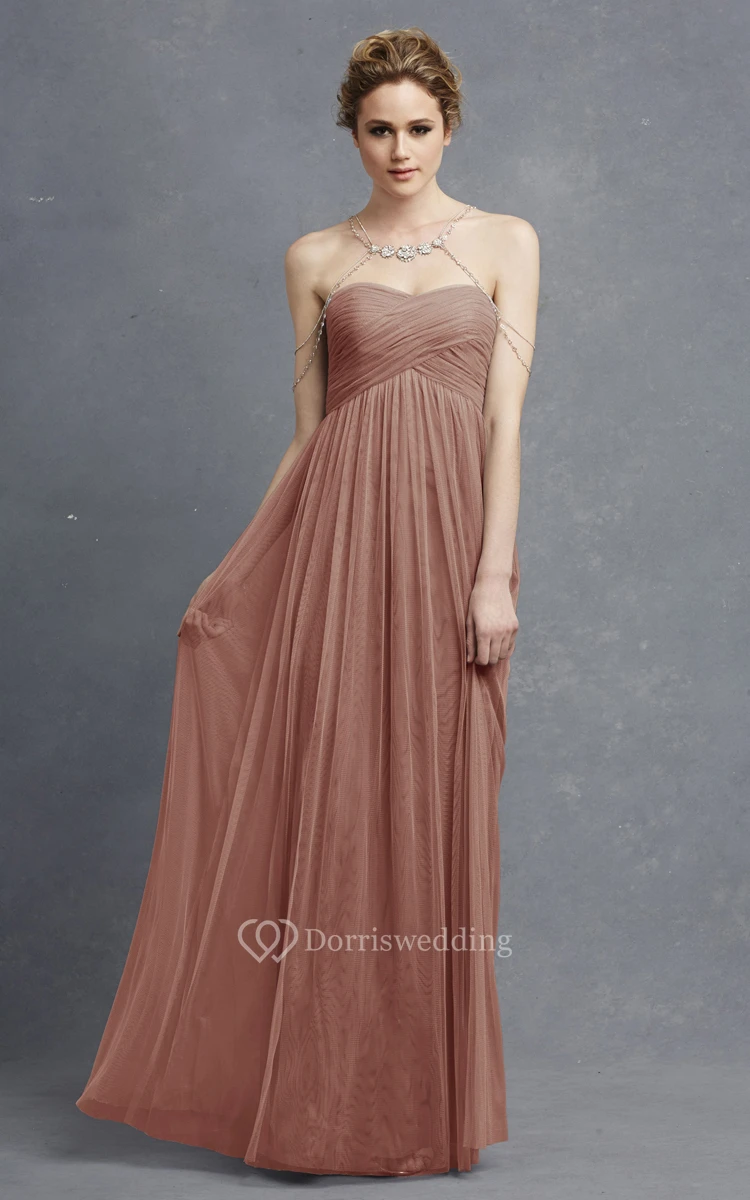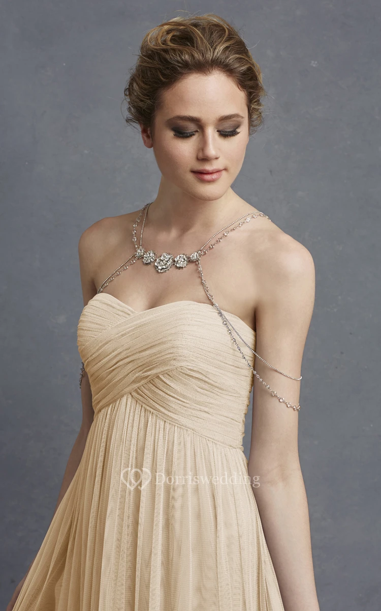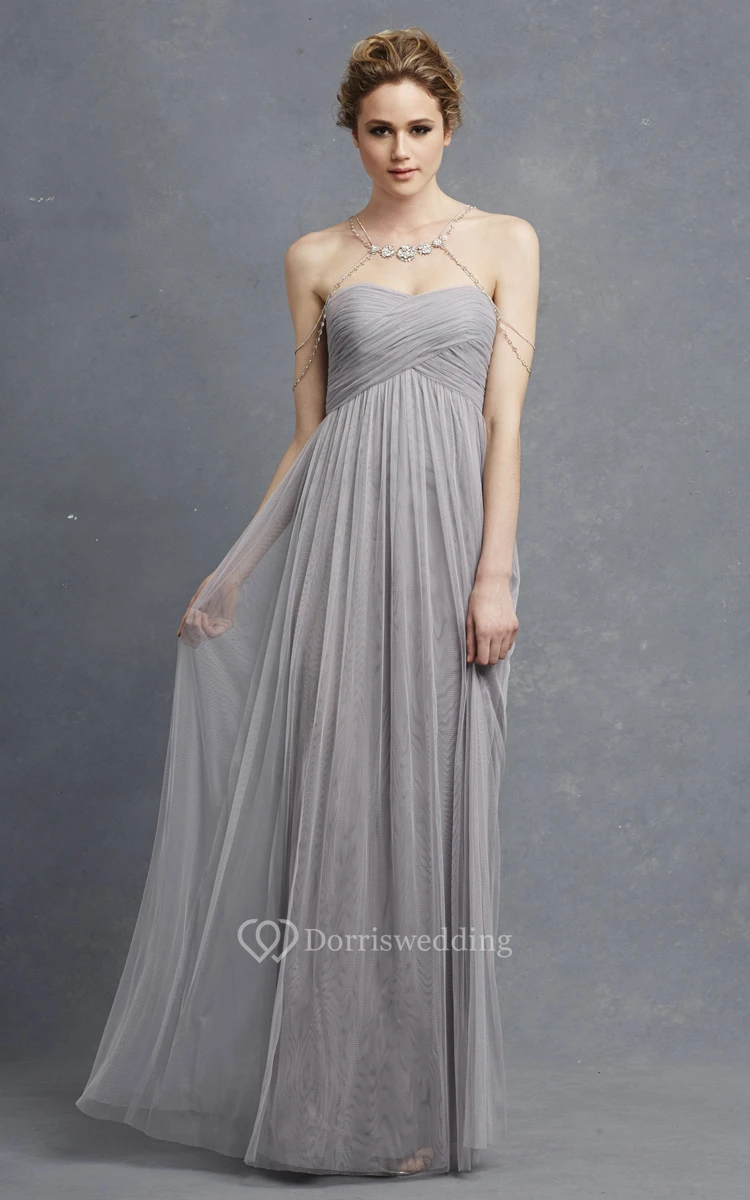 Long Sweetheart Tulle Modern Dress With Crisscross Ruching
