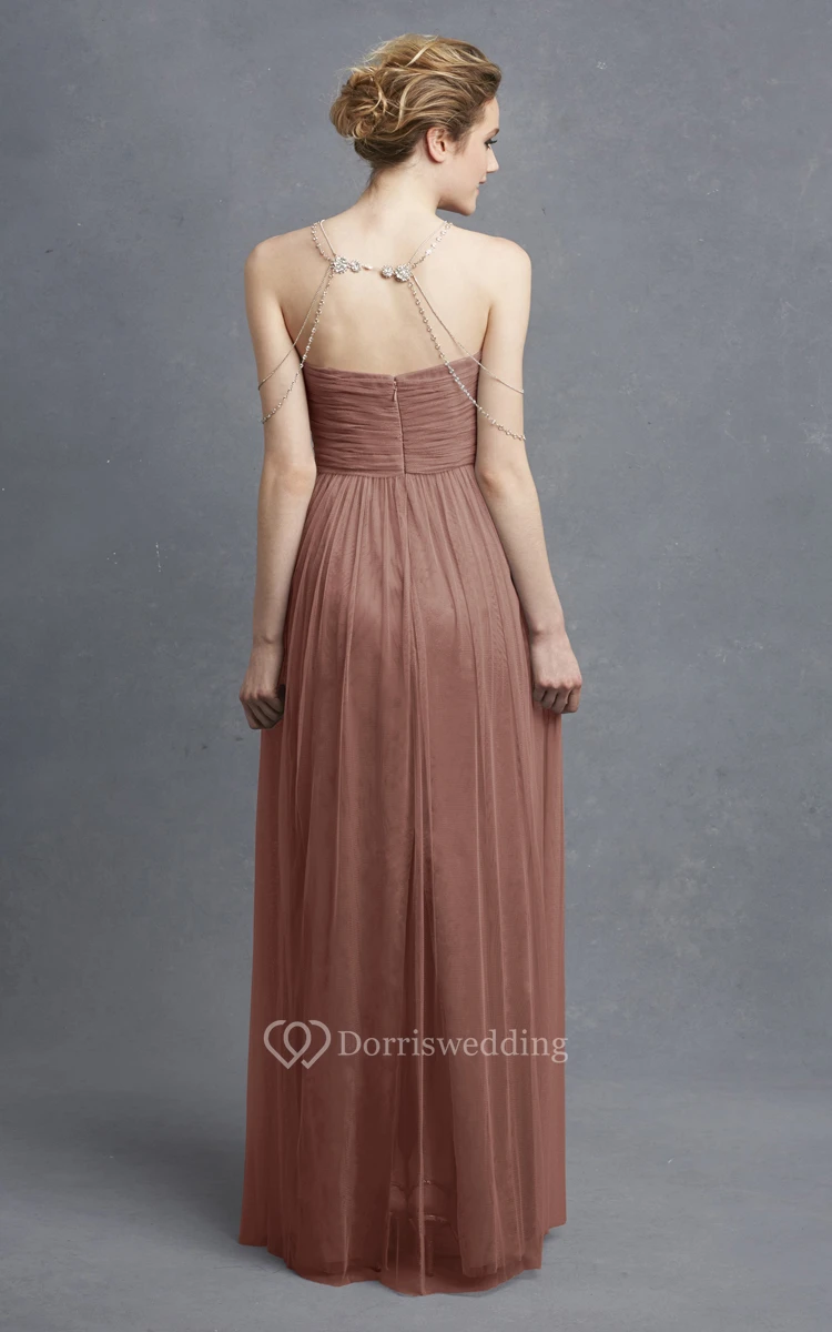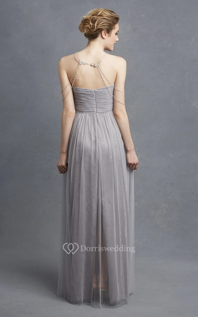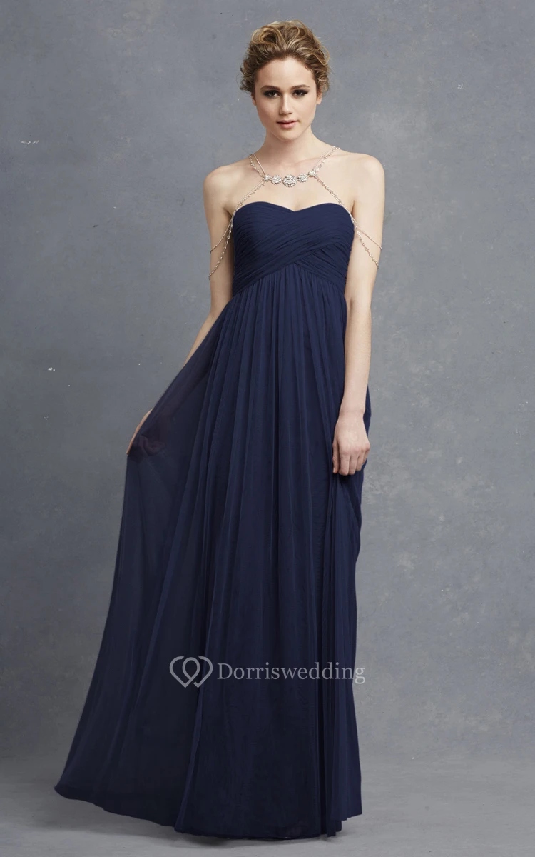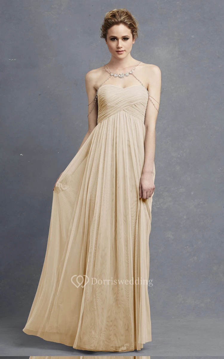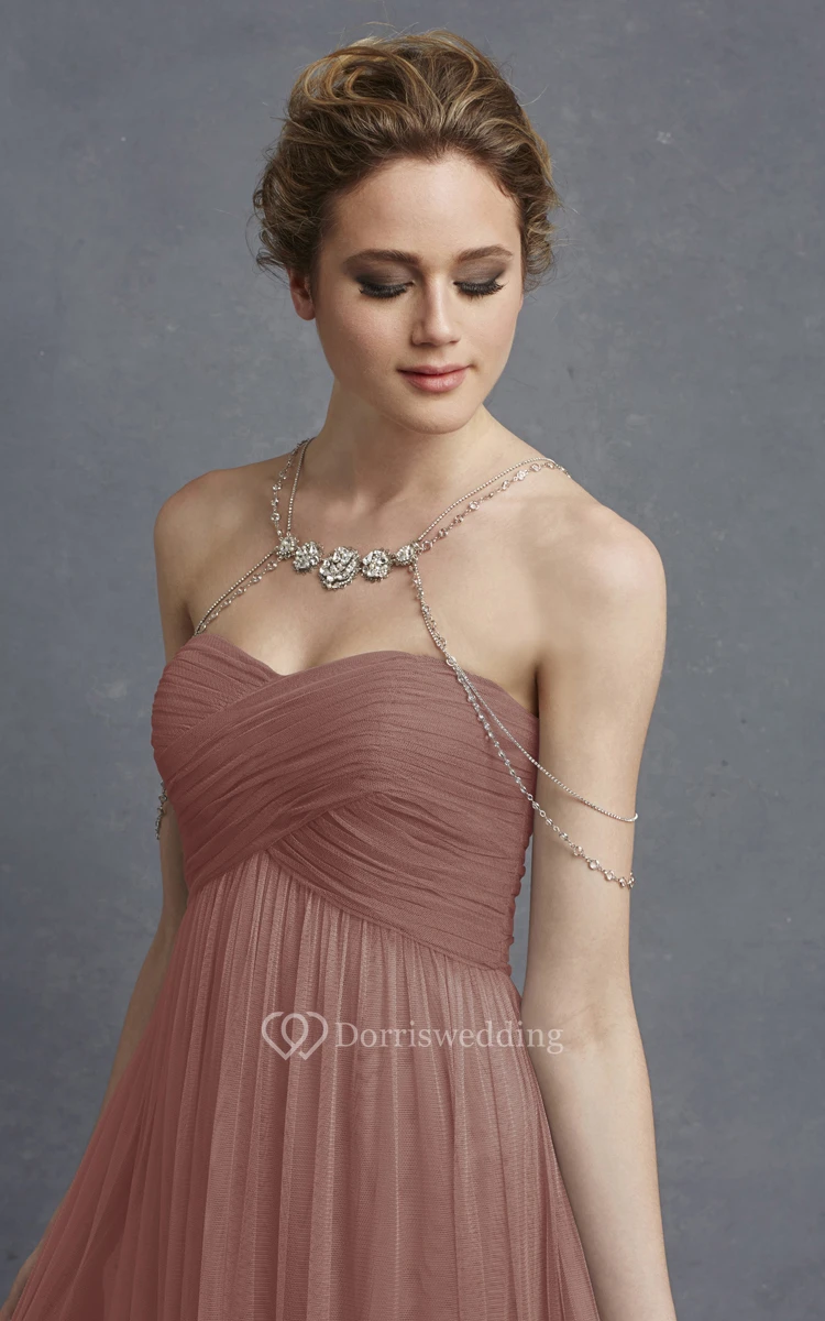 Long Sweetheart Tulle Modern Dress With Crisscross Ruching