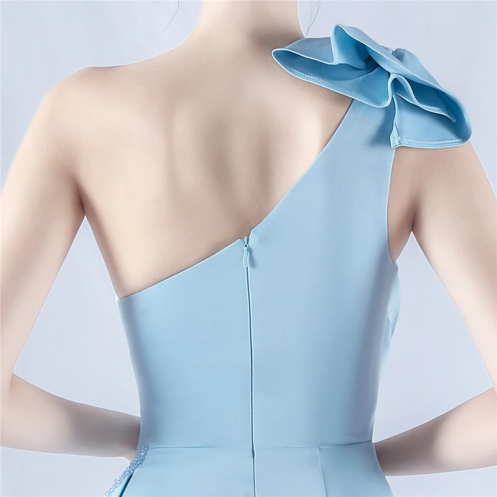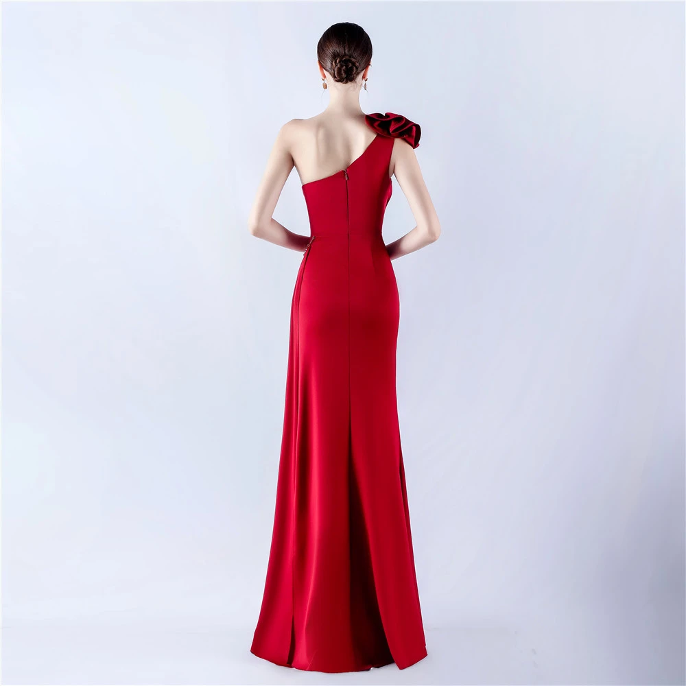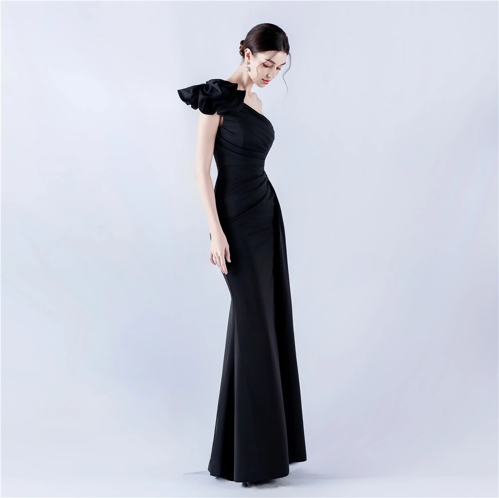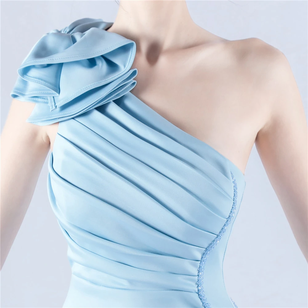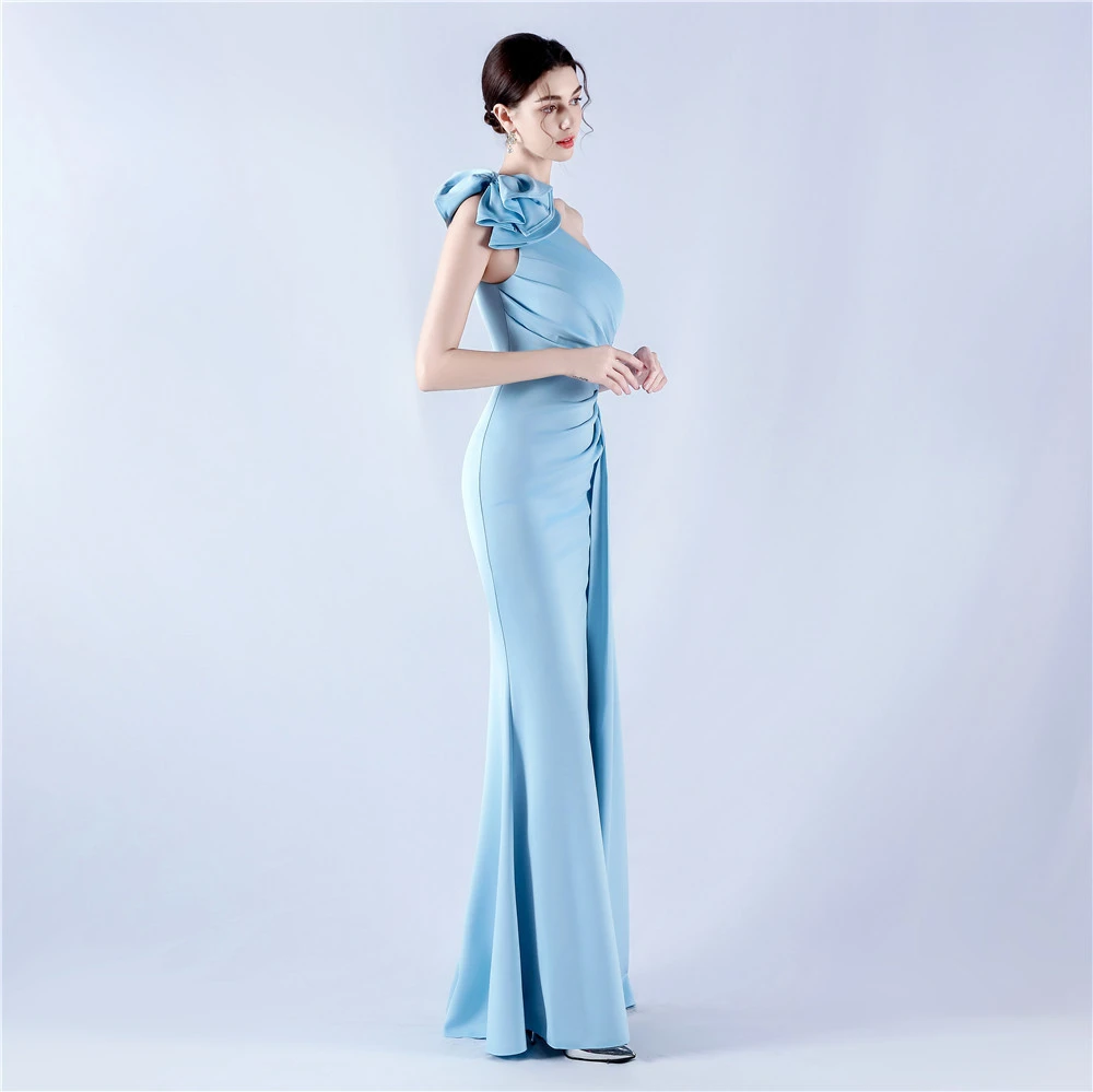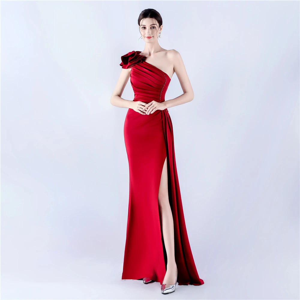Lotus Leaf Shoulder Oblique Collar Craft Beading And Diamond-Set Evening Dress Annual Meeting Celebration
