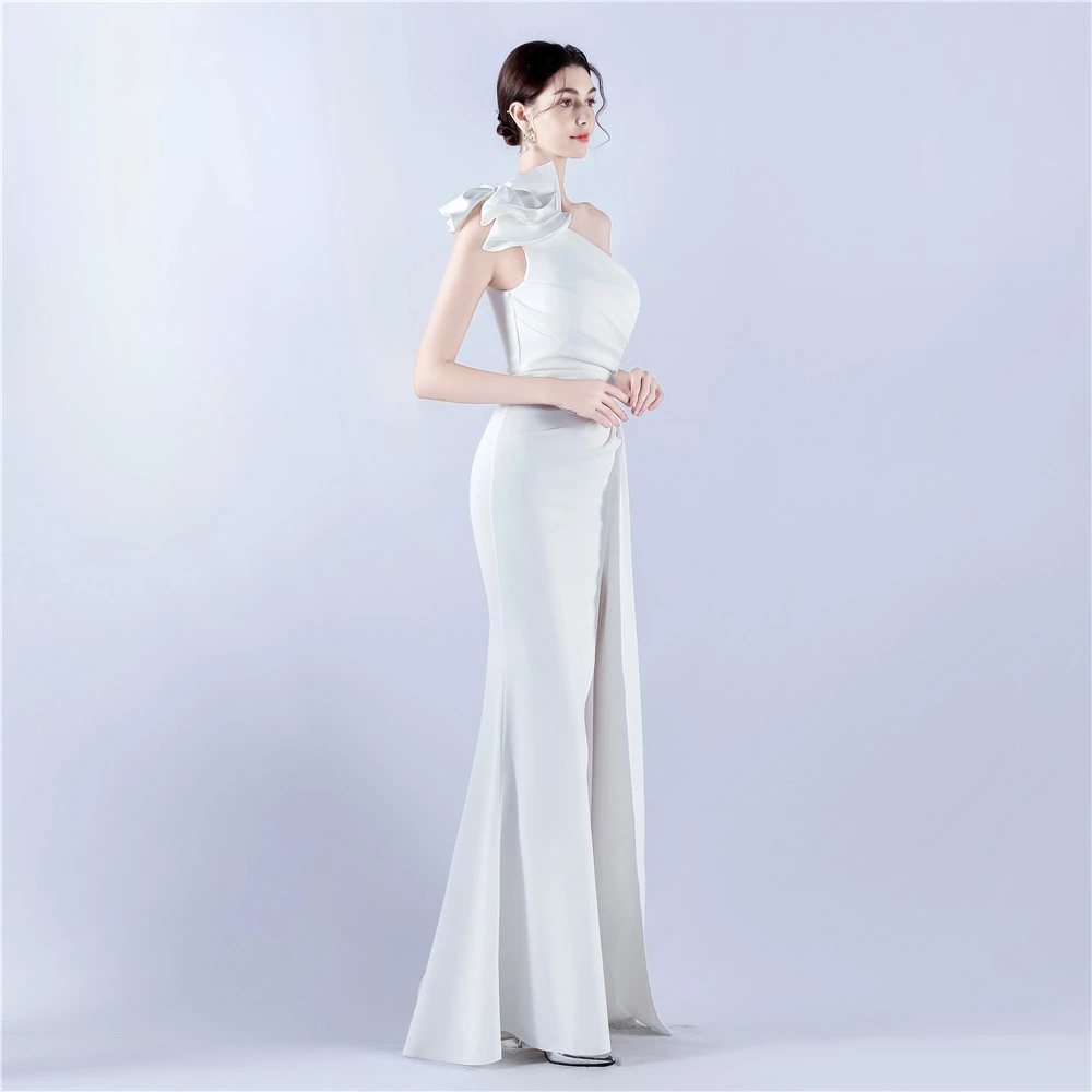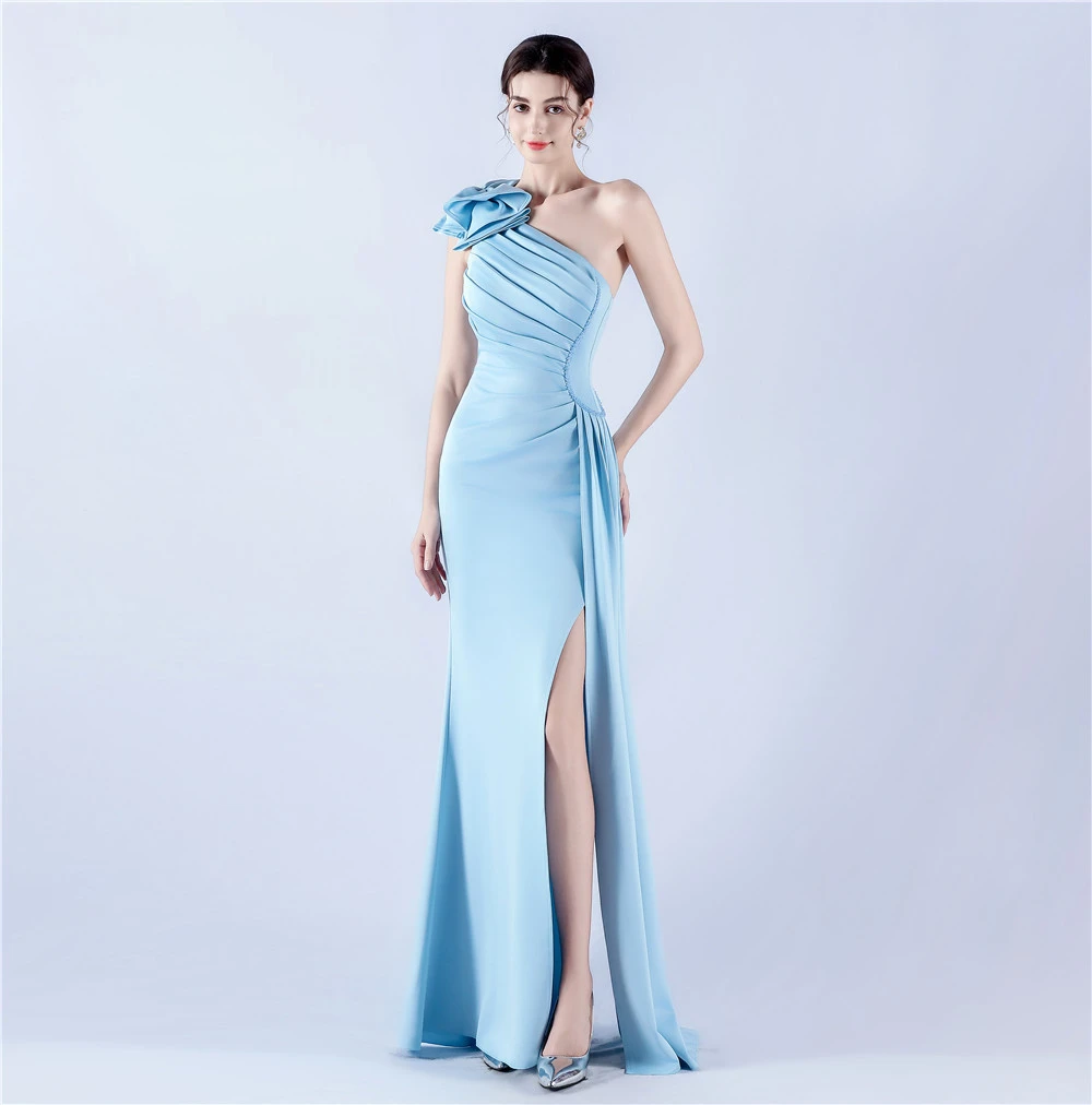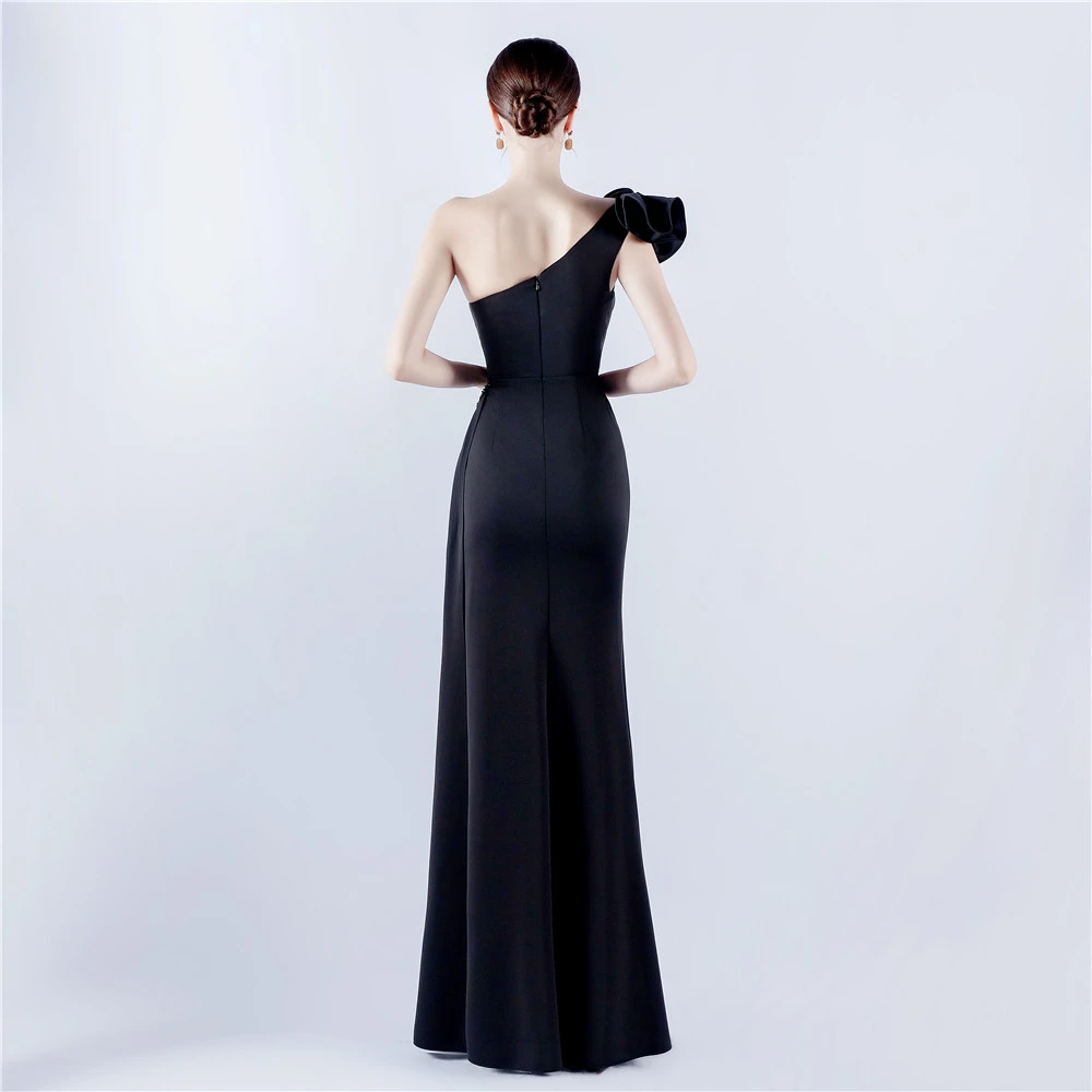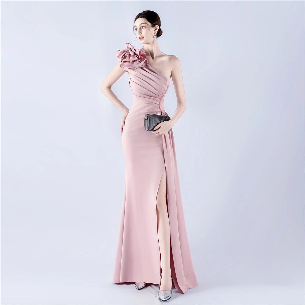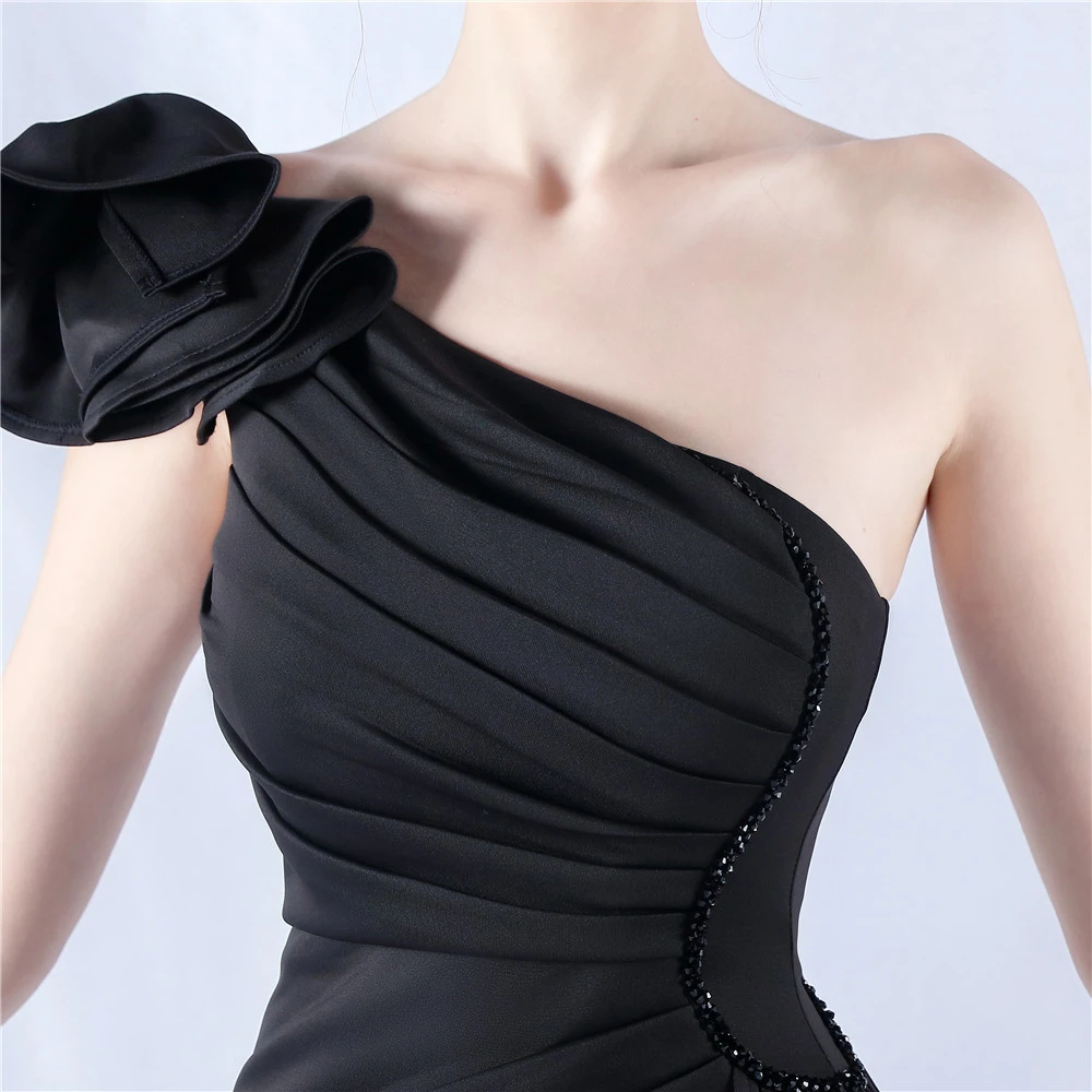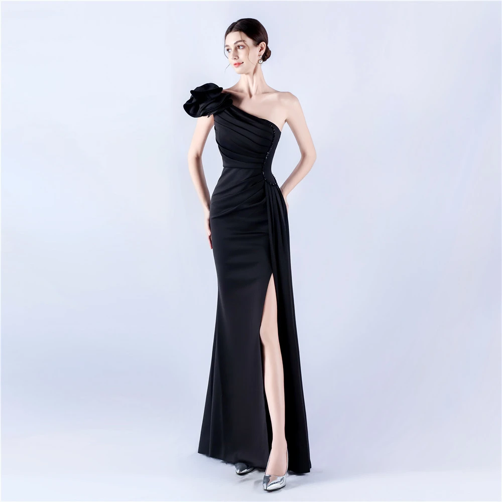 Lotus Leaf Shoulder Oblique Collar Craft Beading And Diamond-Set Evening Dress Annual Meeting Celebration