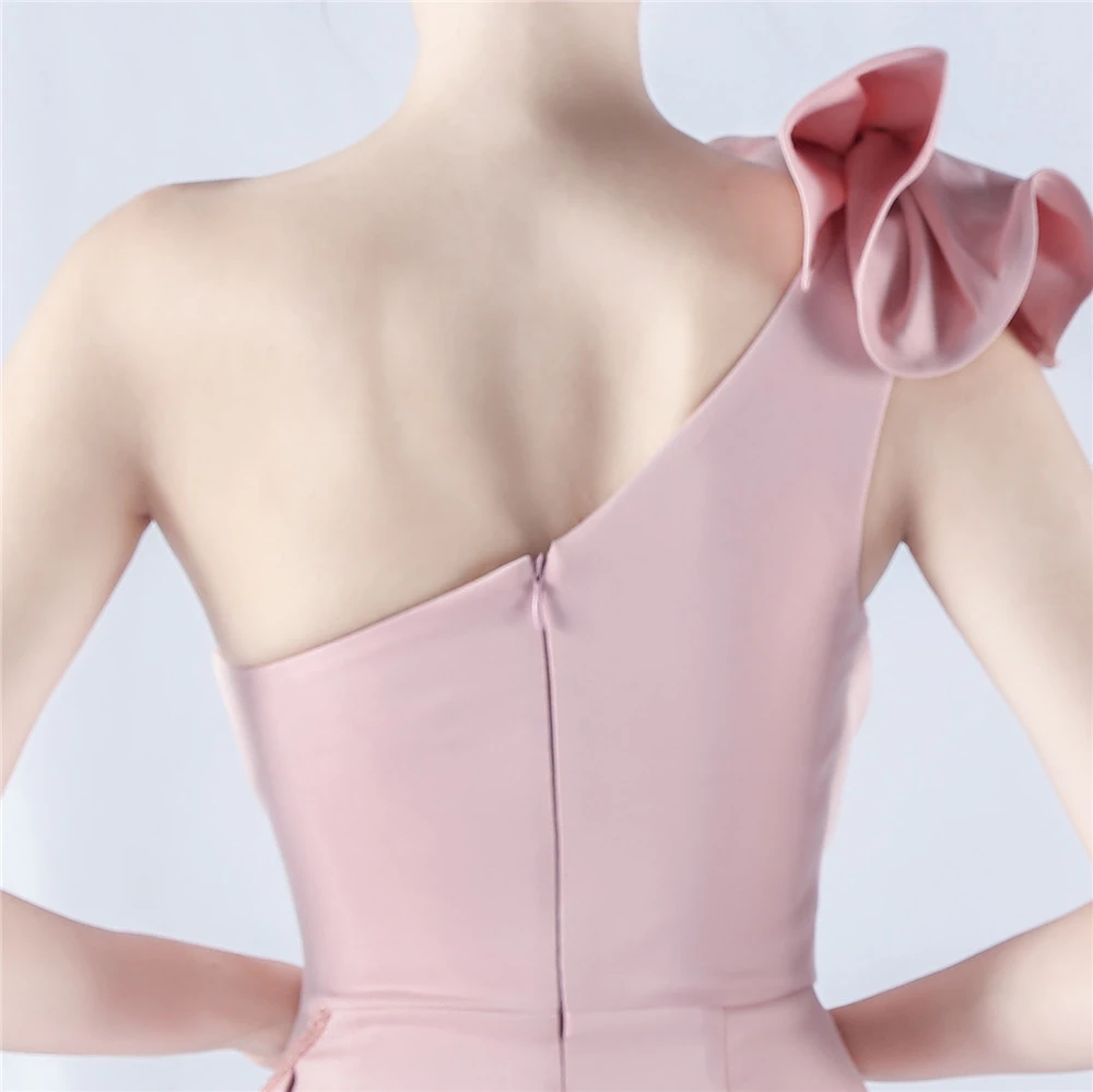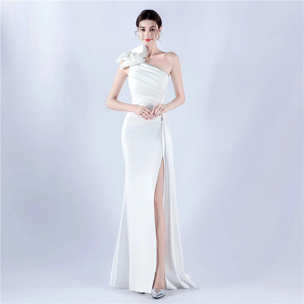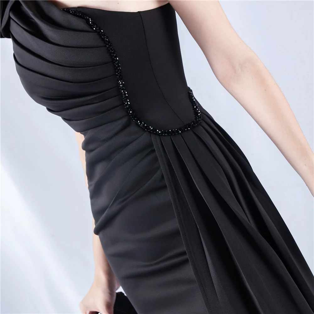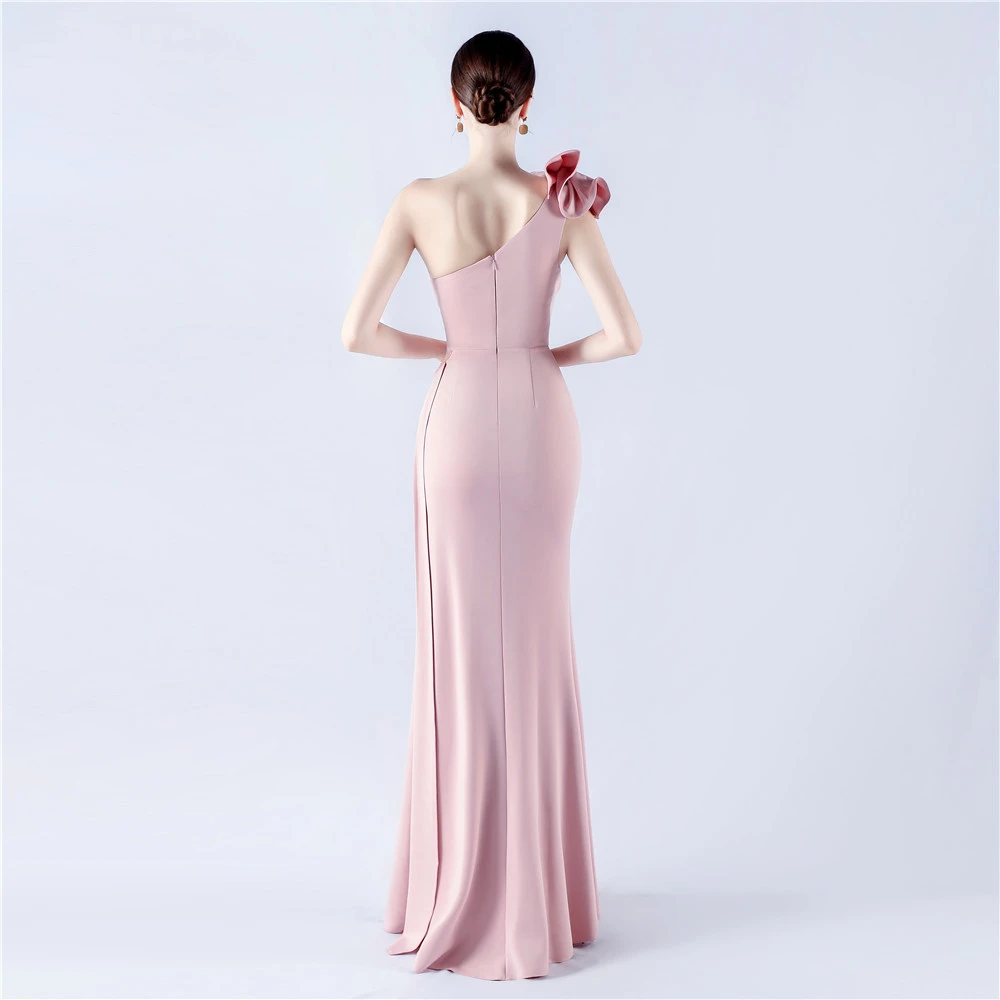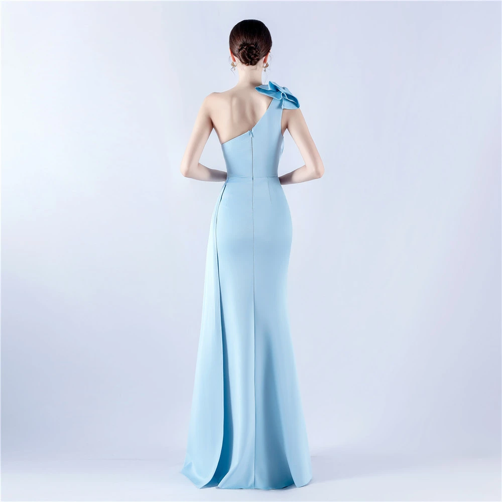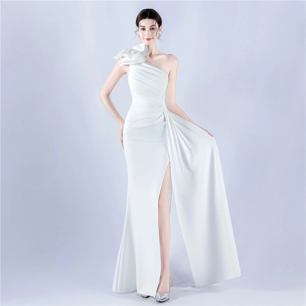 Lotus Leaf Shoulder Oblique Collar Craft Beading And Diamond-Set Evening Dress Annual Meeting Celebration