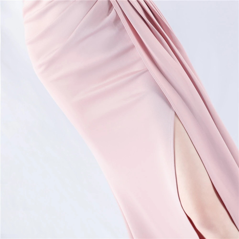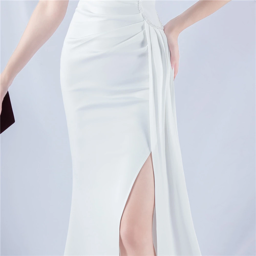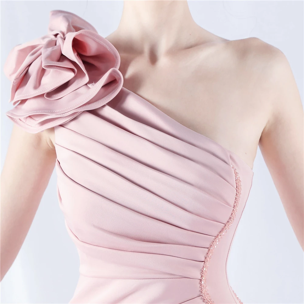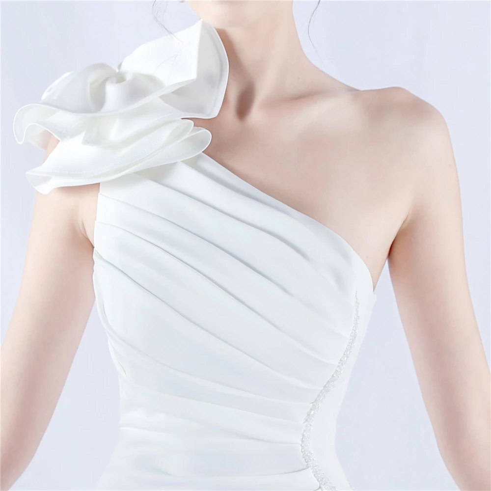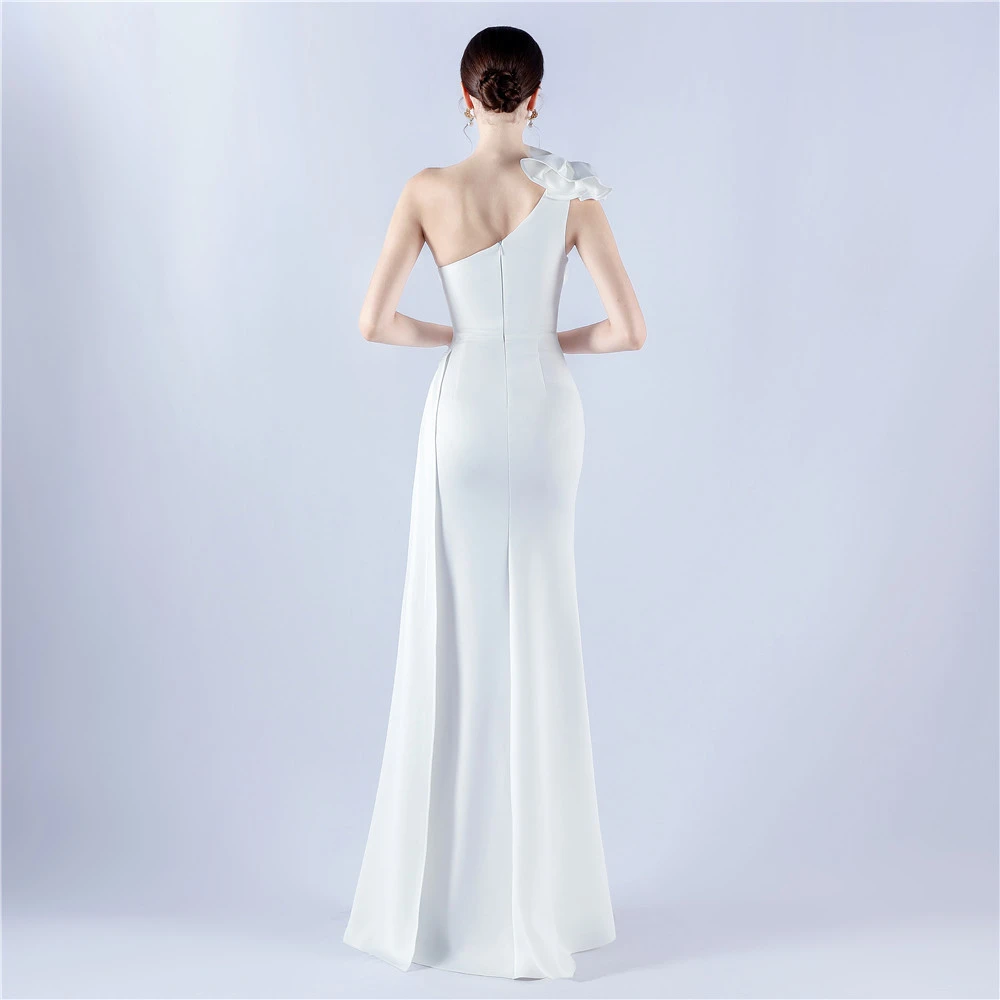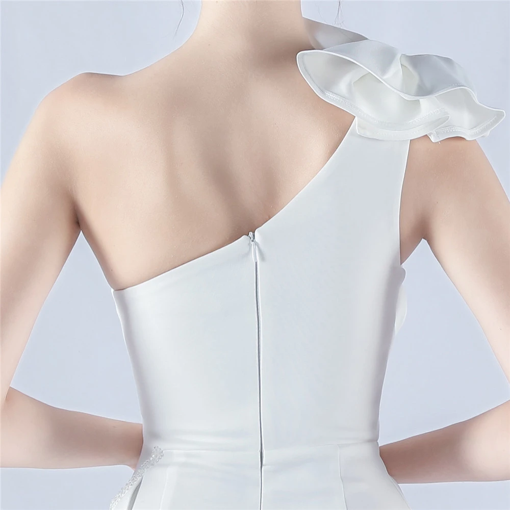 Lotus Leaf Shoulder Oblique Collar Craft Beading And Diamond-Set Evening Dress Annual Meeting Celebration