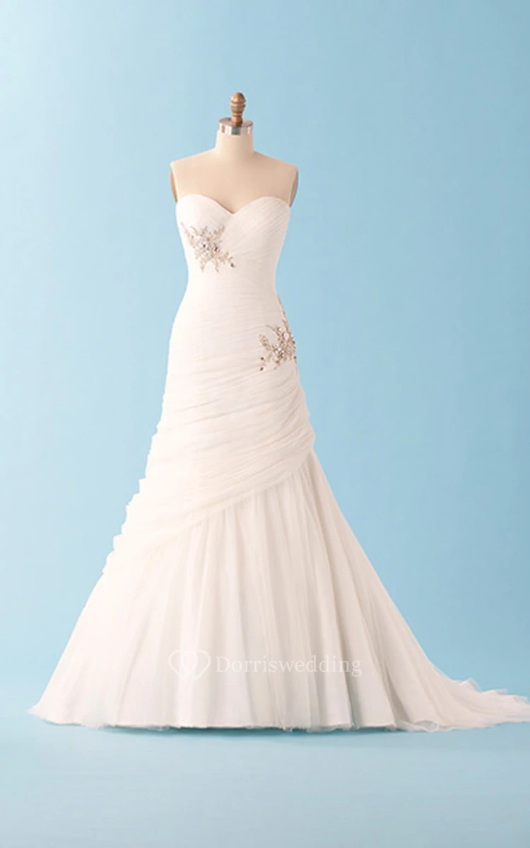 Lovely Beaded A-line long Dress With Sweetheart and Strapless Style