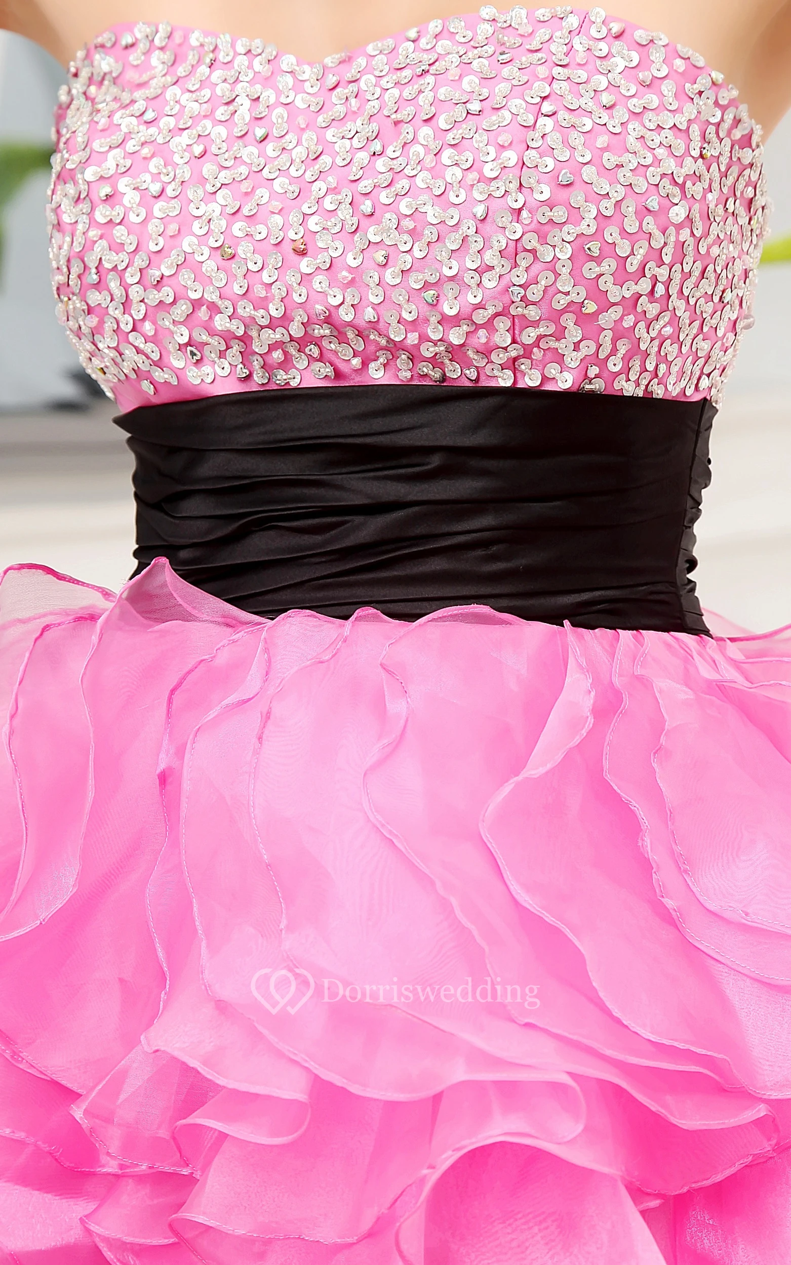Lovely Beaded Dress With Ruched Waist and Ruffles