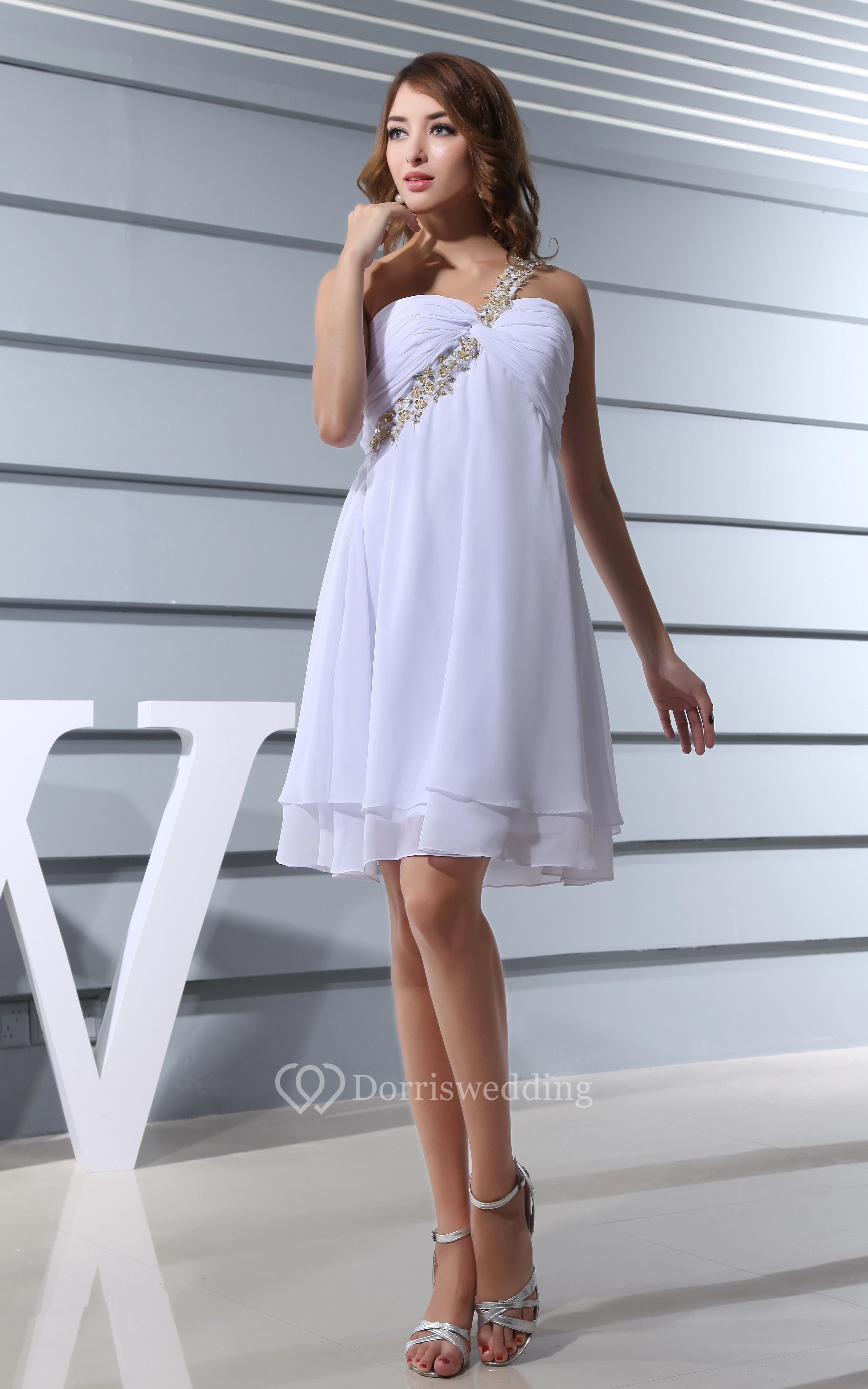 Lovely Chiffon Knee-Length Beaded Dress With Ruching and Single Strap